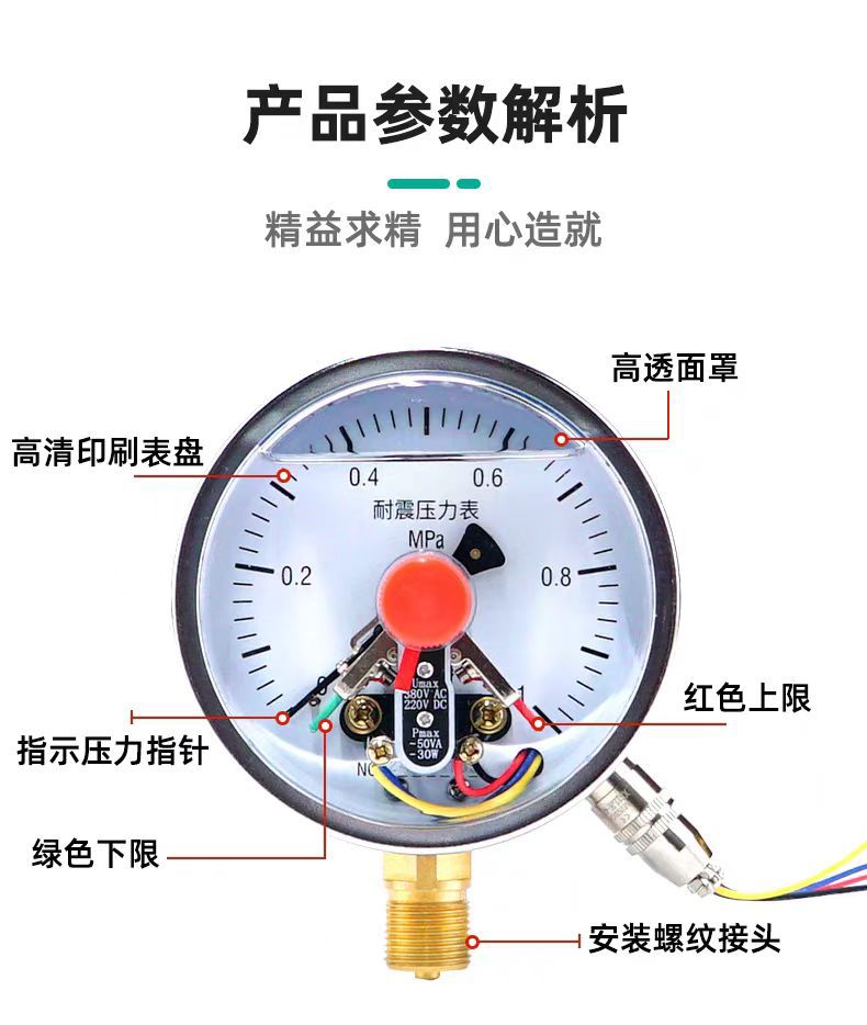 ELECALL YTNXC-100 Seismic Magnetic-Assisted Electrical Contact Pressure Gauge (0.8 MPa) for Water/Oil/Gas Systems, Replaces Standard Pressure Switches