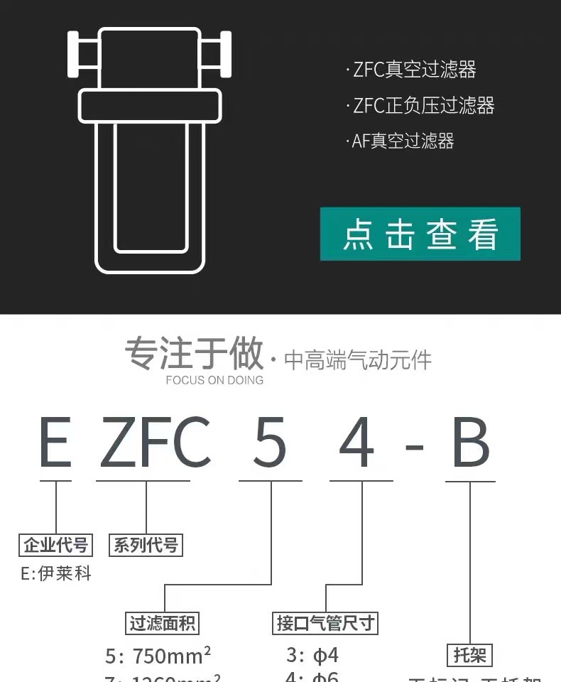ELECALL ZFC100/200 Vacuum Filter EZFC5-3-B/EFA200-F High Precision Air Compressor Filter for Industrial Pneumatic Systems