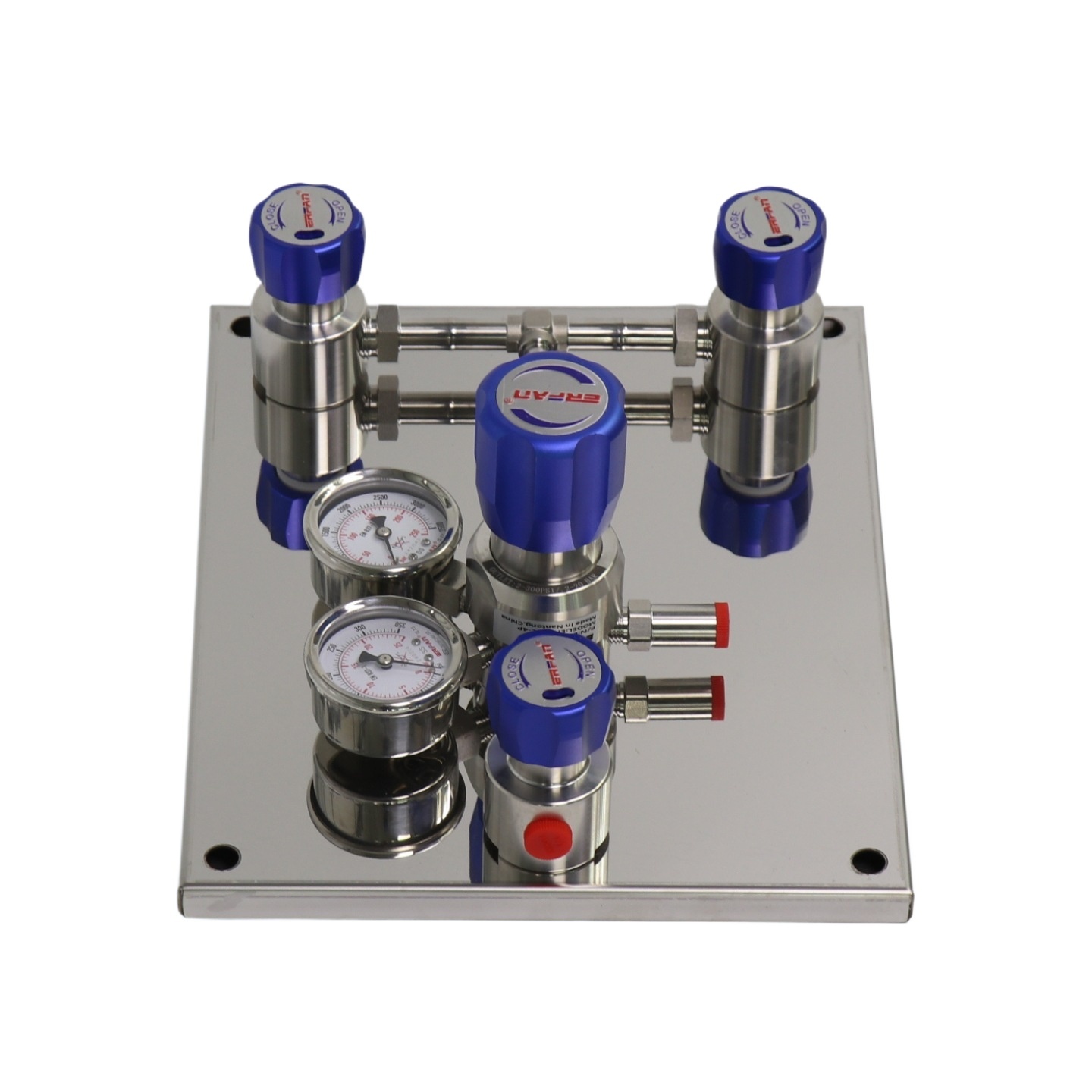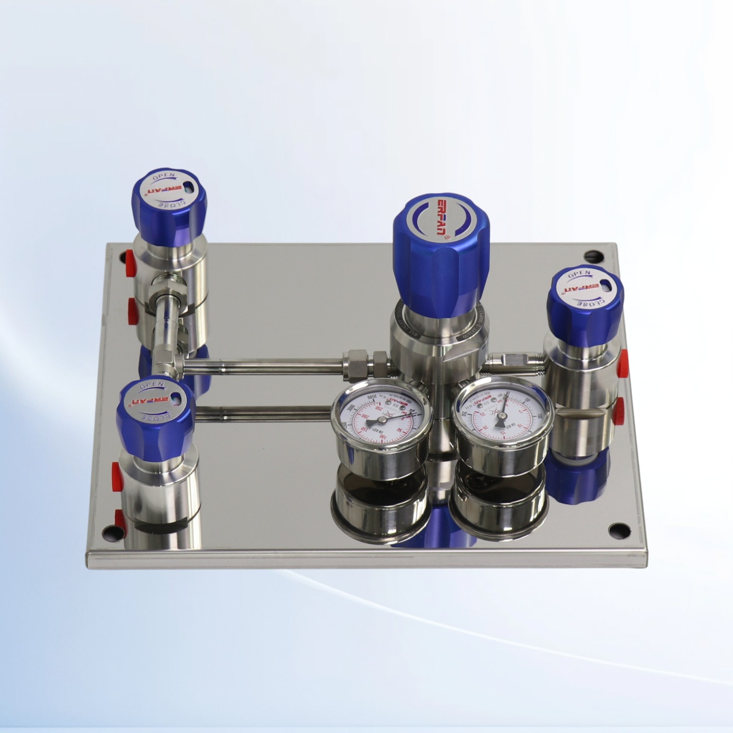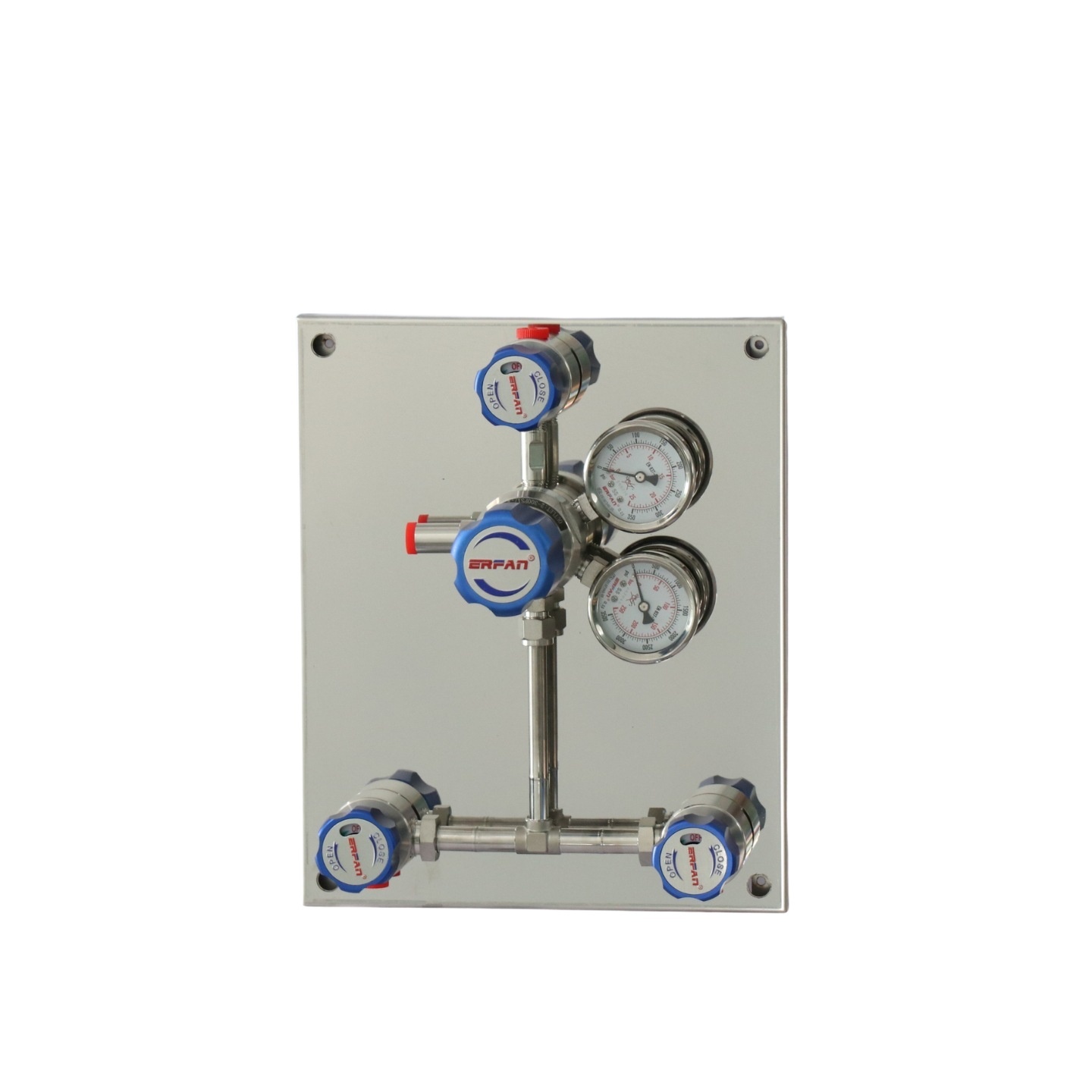 ERFAN Manual Changeover Control Panel (Dual Cylinder Inline, Check Valve Built-in, 2.5 MPa Outlet) for Centralized Gas Supply – Replaces EF-R110L-DV-5P-250-25-00-00