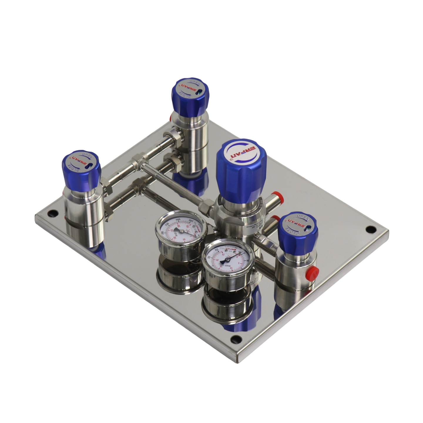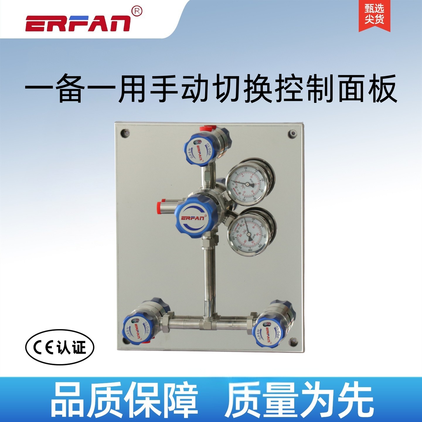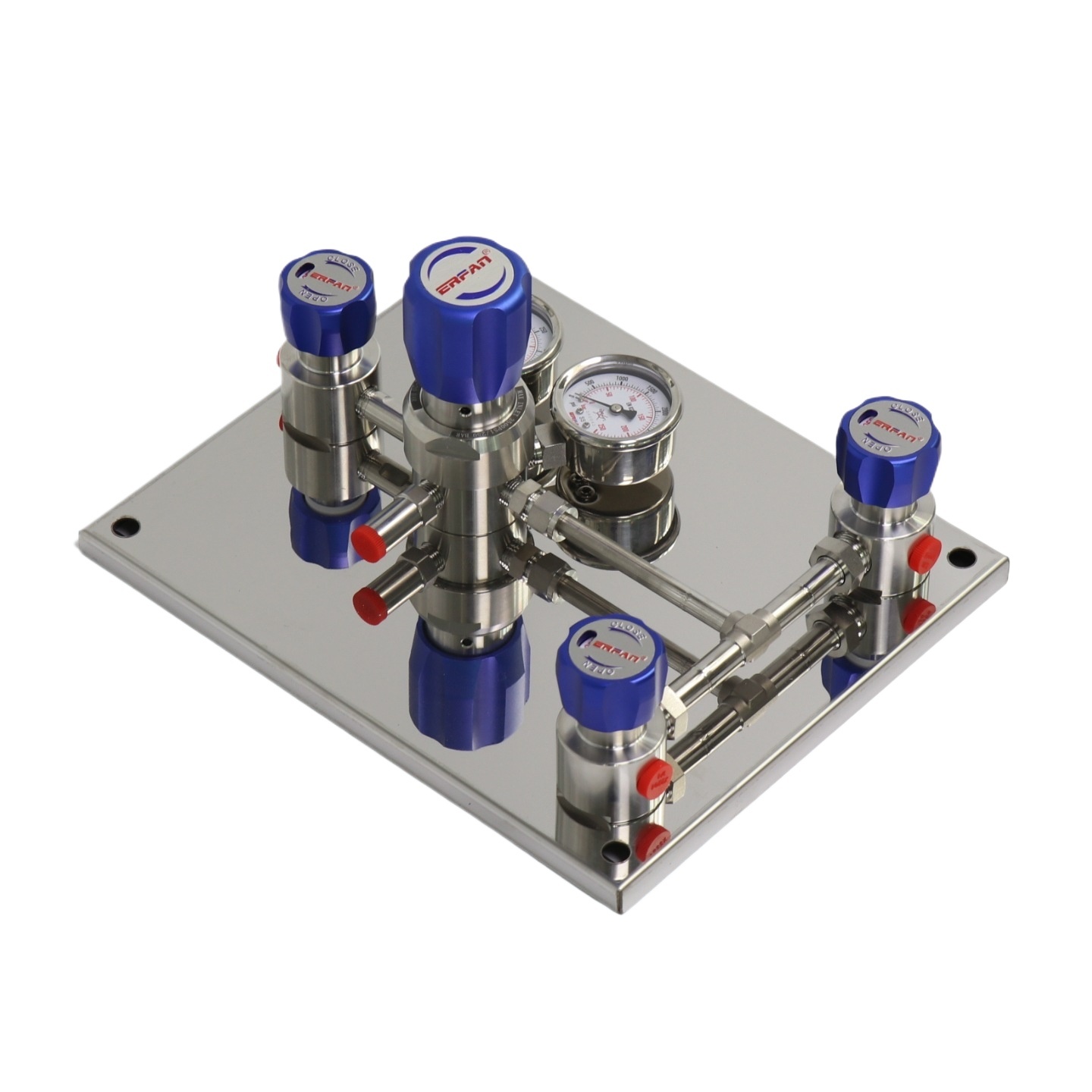 ERFAN Manual Changeover Control Panel (Dual Cylinder Inline, Check Valve Built-in, 2.5 MPa Outlet) for Centralized Gas Supply – Replaces EF-R110L-DV-5P-250-25-00-00