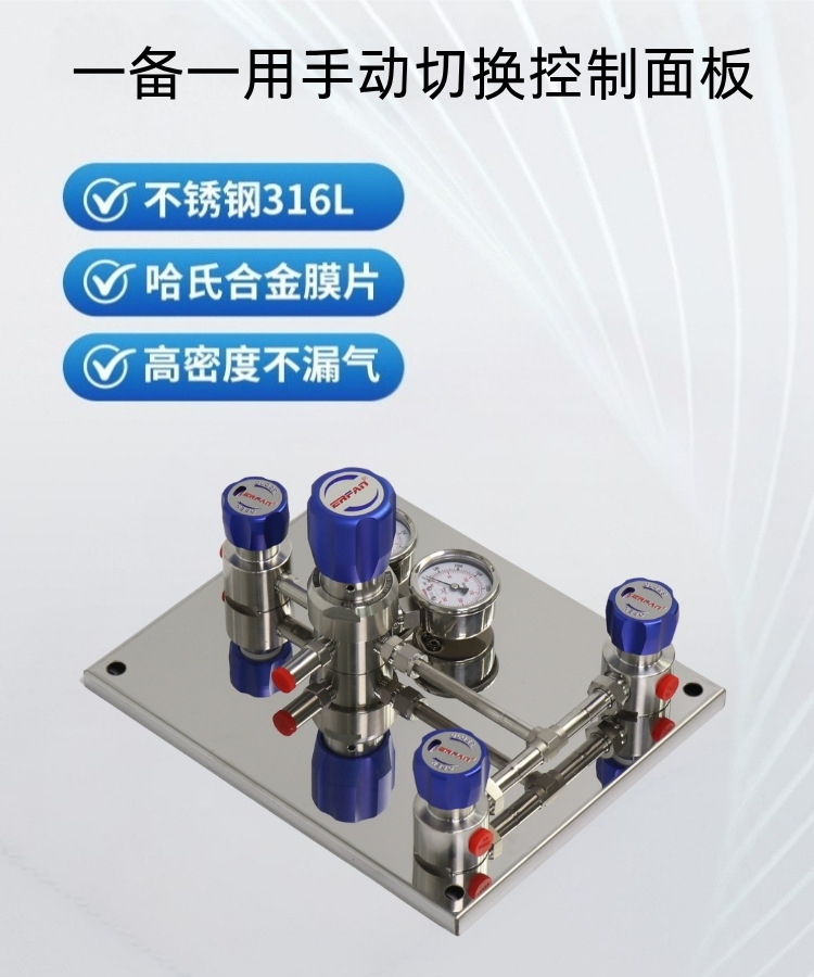 - Key Specs & Performance: Manual changeover panel with built-in unidirectional valve, rated for a 2.5 MPa outlet pressure and Cv=0.08 flow, preventing cross-cylinder contamination.