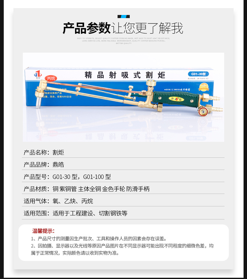 - What You Get: Includes one G01-100 economical suction-type cutting torch, ideal for steel cutting in factories, shipyards, and other industrial settings.