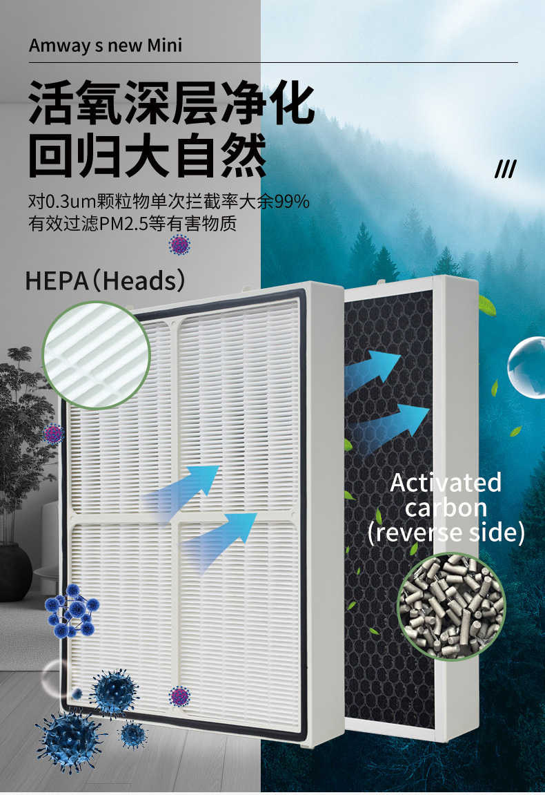 Efficient Composite Air Filter with Activated Carbon for AMWAY MINI Air Purifier, Replaces OEM Part