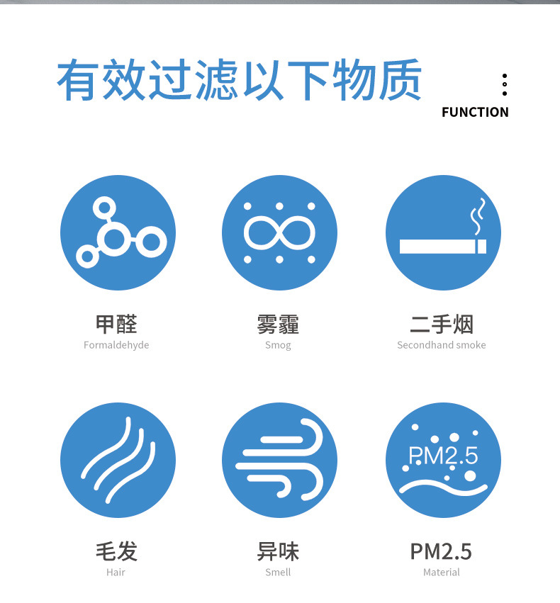 - Advanced Filtration Performance: Effectively removes formaldehyde, odors, and PM2.5 particles, providing cleaner and fresher indoor air.