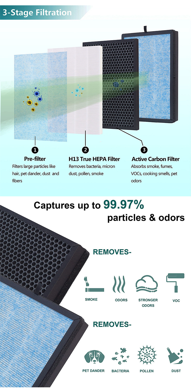 - Enhanced Air Filtration: Capture up to 99.97% of airborne particles as small as 0.3 microns, including dust, pollen, pet dander, and smoke, ideal for allergy sufferers.