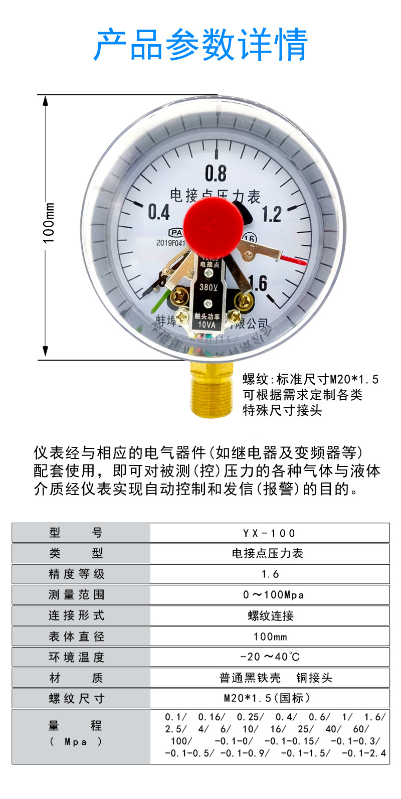 - What You Get: One YX-100 electric contact pressure gauge, factory-supplied with stable performance and sensitive response, accompanied by thoughtful after-sales support.