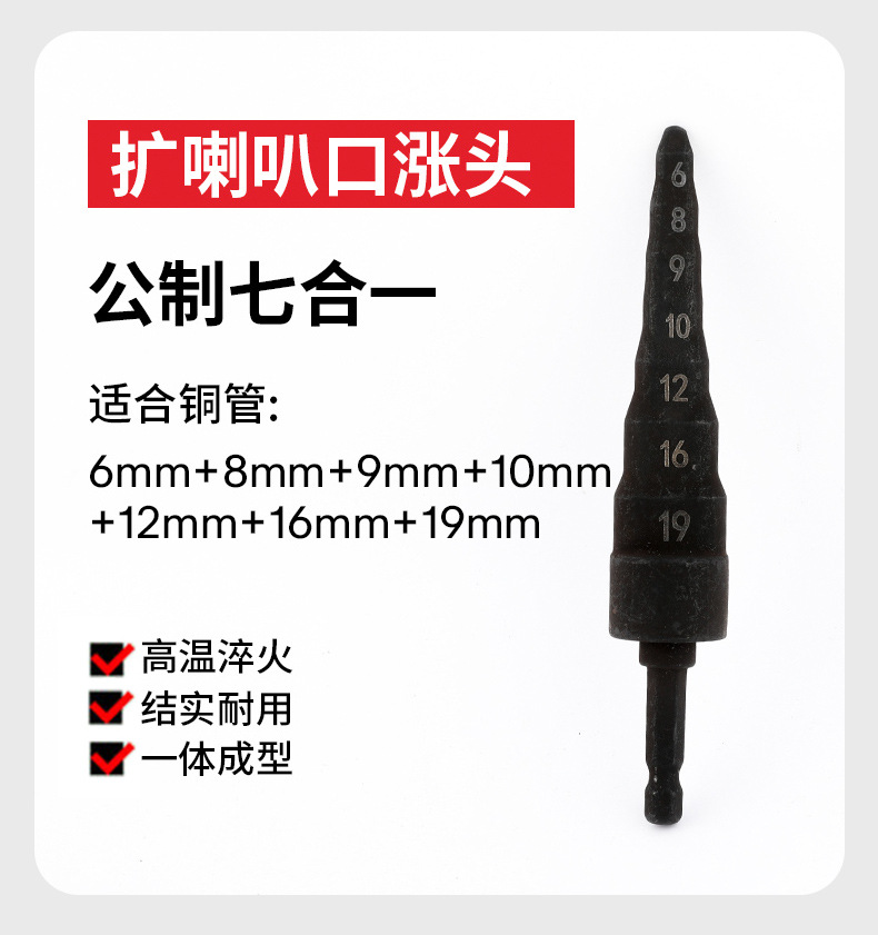 - Efficient Performance: Features a ‘seven-in-one’ multi-diameter design (6-19mm) that enables quick and precise flaring without damaging the copper tube, improving work efficiency.