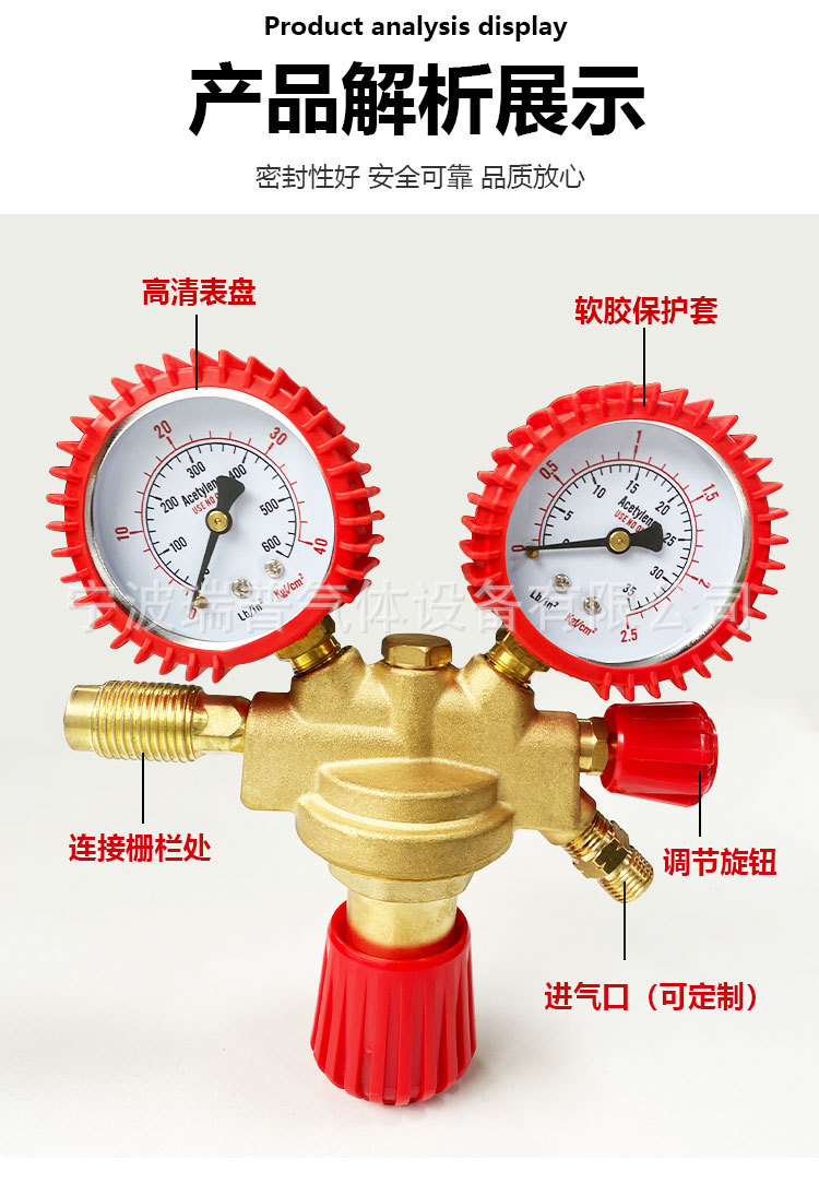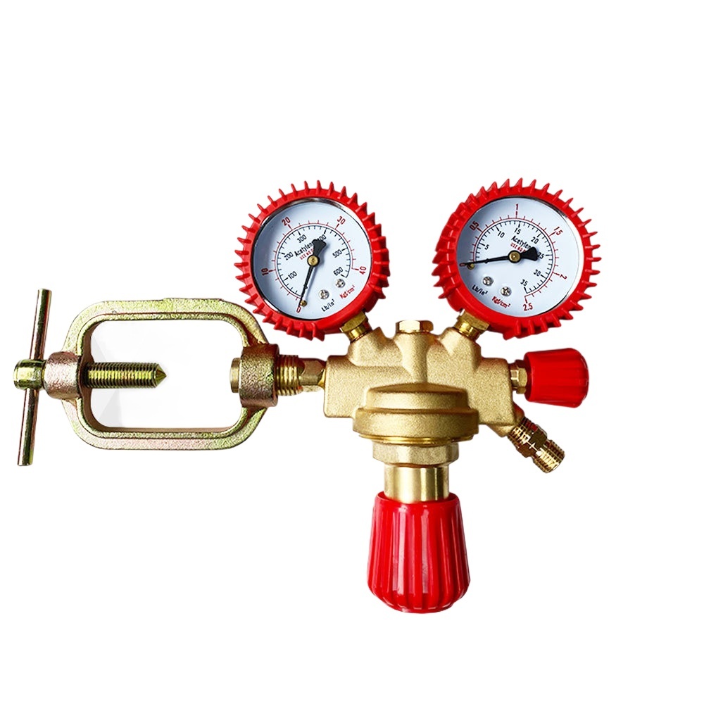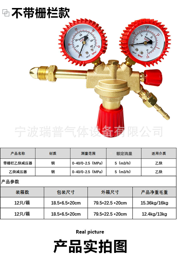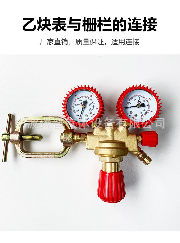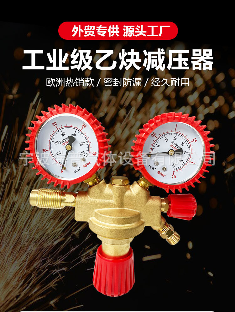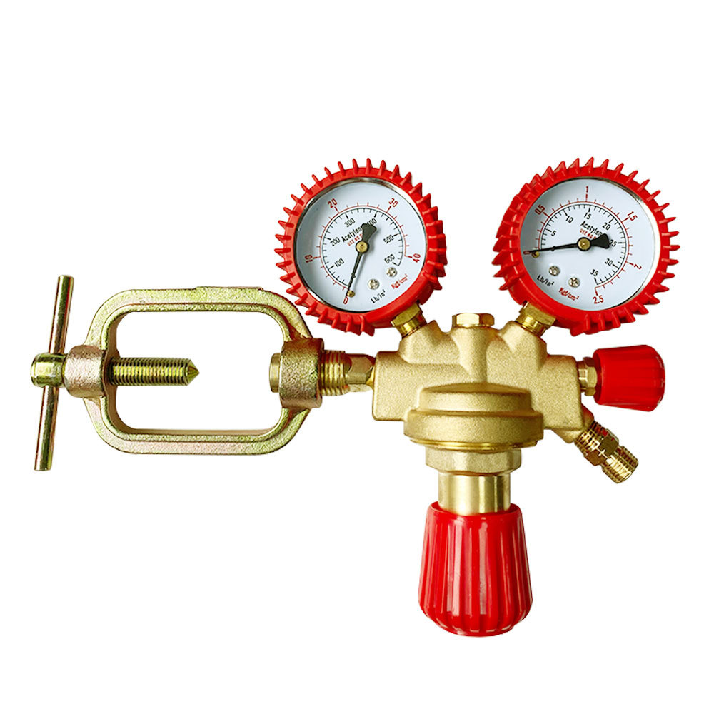 European Style Acetylene Gas Pressure Regulator with Barbed Outlet Double Stage All-Copper Industrial Acetylene Reducer valve with Reverse Thread Nozzle AC-Grille Type