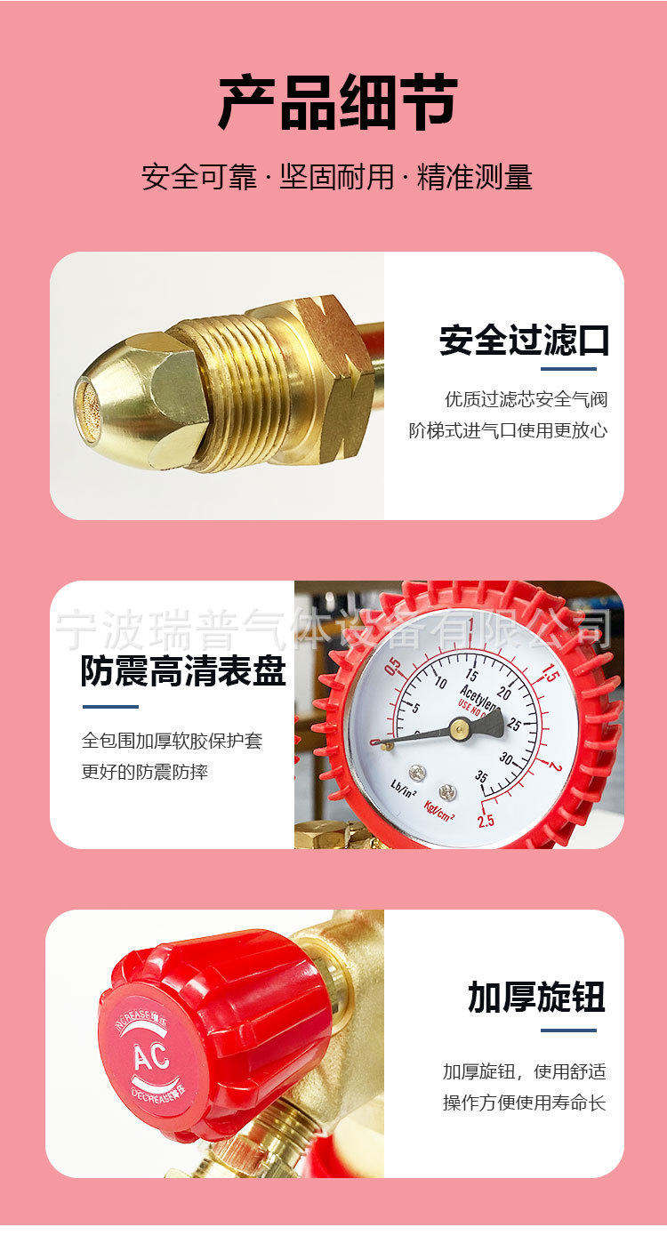 - Dual-Gauge Precision & Safety: Features two clear gauges for accurate pressure monitoring and a double-stage reduction design for stable output pressure, providing enhanced safety and precise control for acetylene applications.