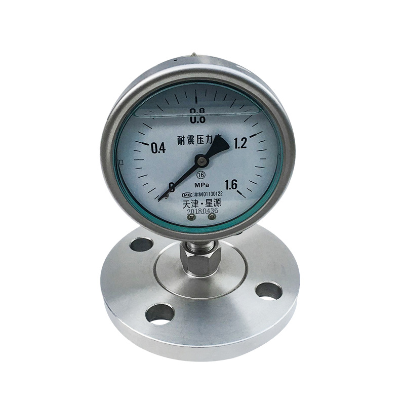 Explosion-Proof Pressure Gauge YFN-100BMP Diaphragm Vacuum Pressure Gauge Stainless Steel Anti-vibration Oil Gauge Flange Pressure Gauge 0-1.6 MPa