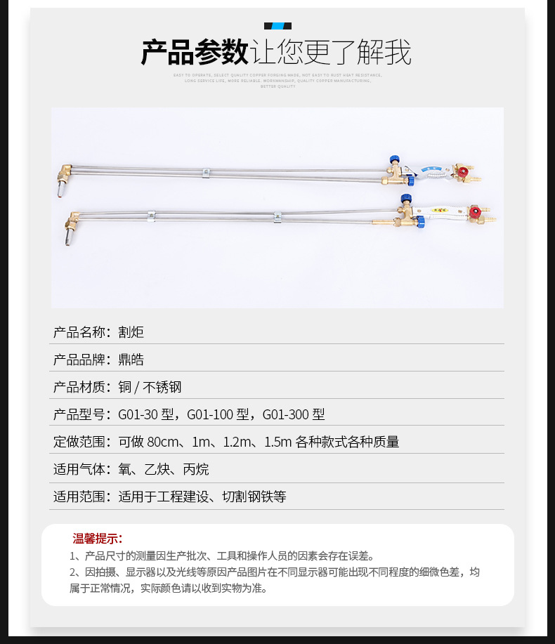 - Wide Compatibility: Compatible with G01-30, G01-100, and G01-300 models, this extended suction-type cutting torch is suitable for various industrial cutting applications.