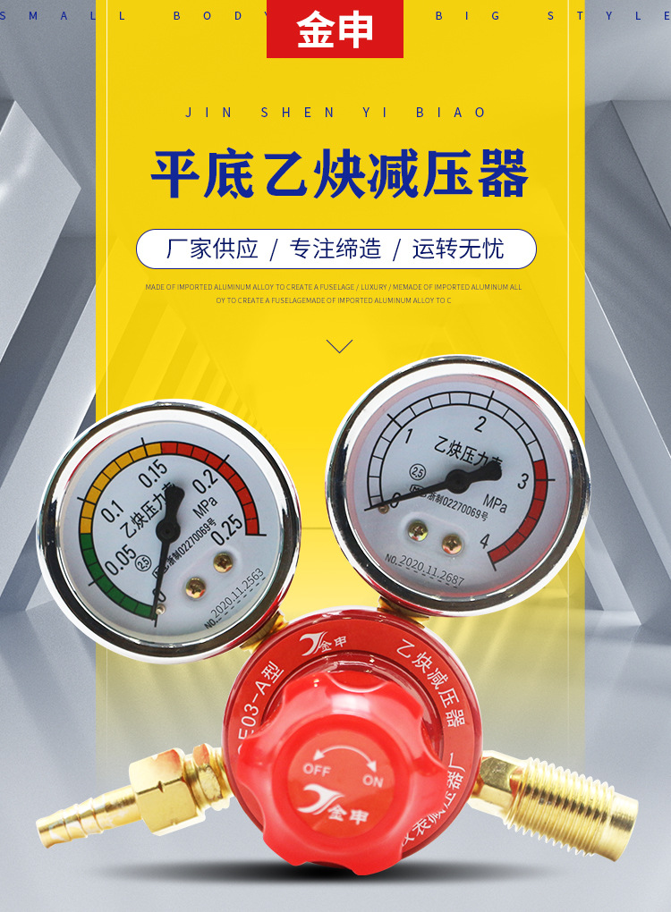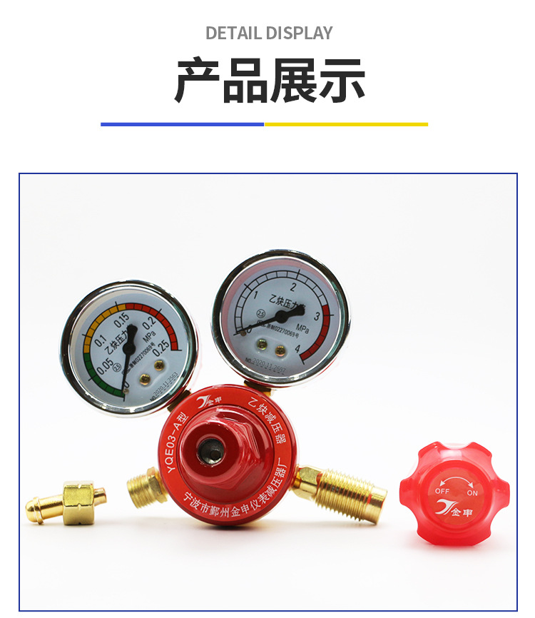 Flat Bottom Acetylene Pressure Reducer YQE03-A (0-3MPA) for Gas Welding Cutting