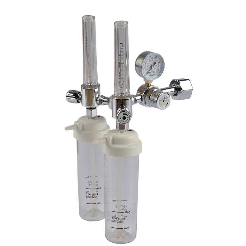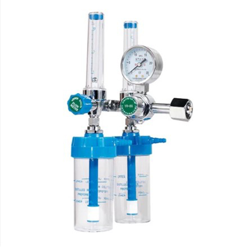 Floating Oxygen Inhaler Pressure Reducer Oxygen Cylinder Flow Meter (Dual Flow Meter) with 0-25Mpa Measuring Range and 1-10L/min Flow Rate