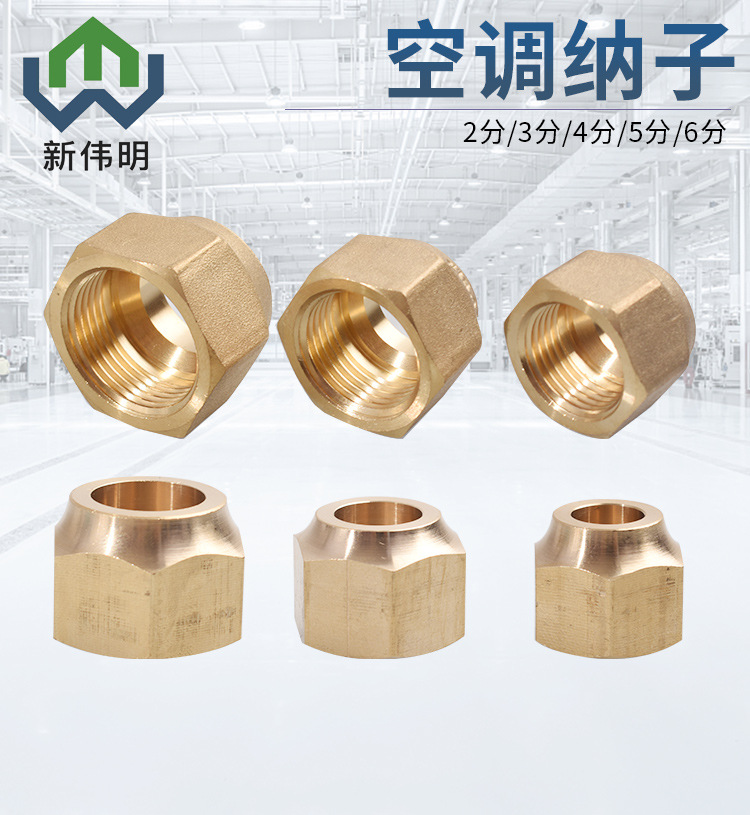 Forged Brass Air Conditioner Flare Nut (1/4, 3/8, 1/2, 5/8, 3/4 inch) for HVAC Refrigeration Systems, Replaces AC Copper Pipe Nuts Anti-Corrosion Anti-Cracking