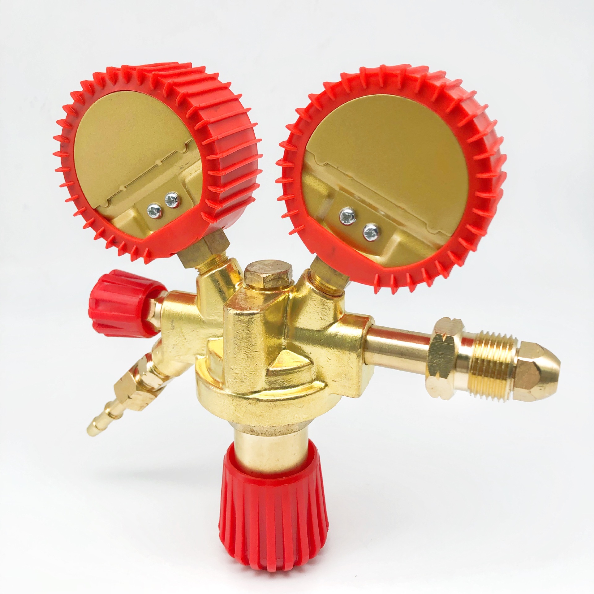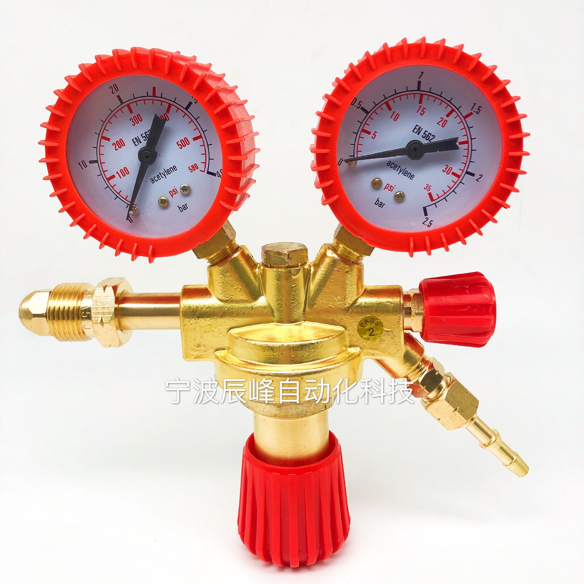 Full Brass Acetylene Oxygen Gas Pressure Regulator CGA510 Dual Gauge Flow Meter for EU Welding Cutting Systems