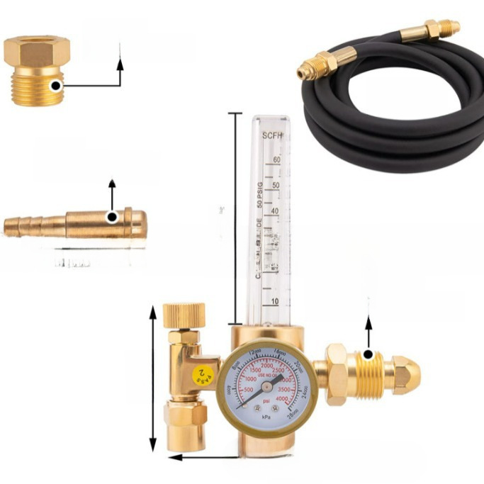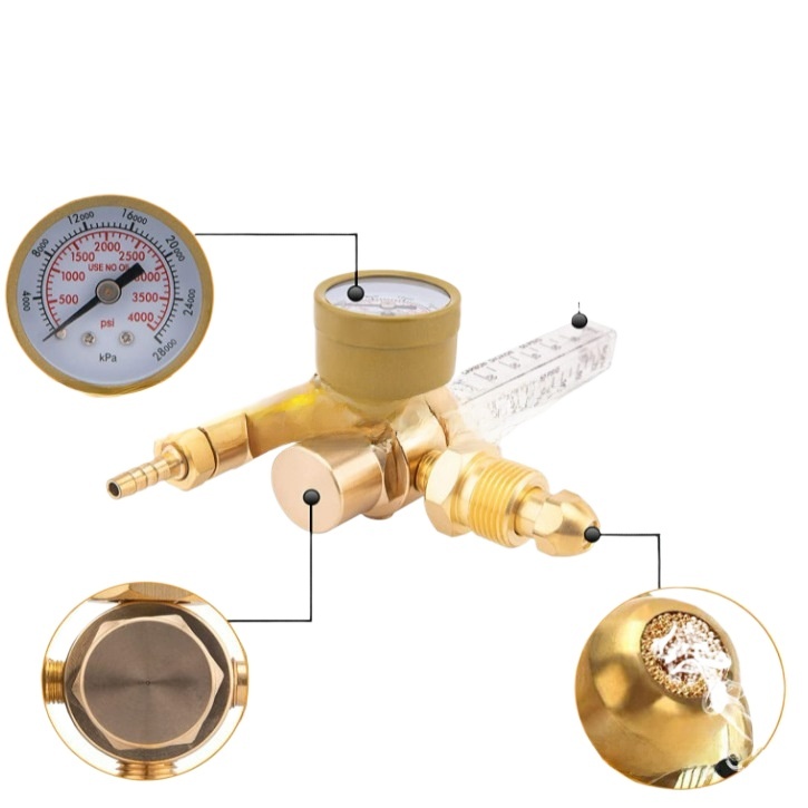 Full Brass Dual Flow Argon & CO2 Gas Regulator CGA580 for TIG Welder with Double Output Flowmeters