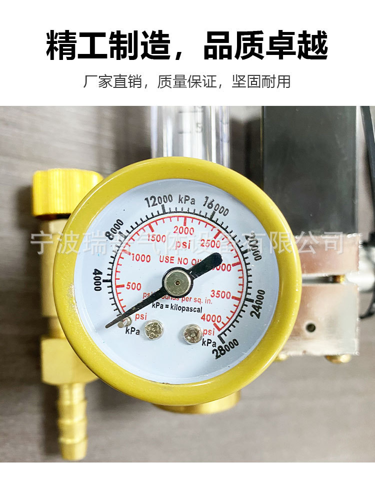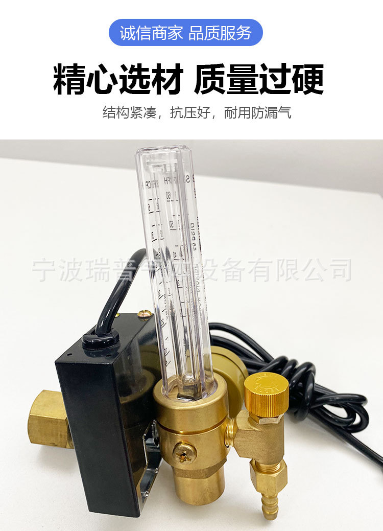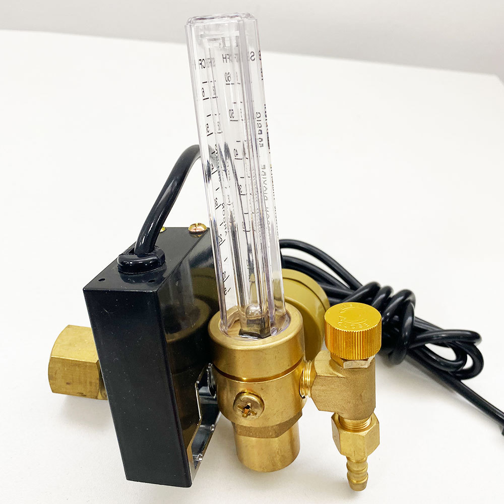 Full Copper CO2 Electric Heating Pressure Reducer Regulator for CO2 Gas Cylinder Welding with Flow Meter and Pressure Gauge, Output 0.35MPa