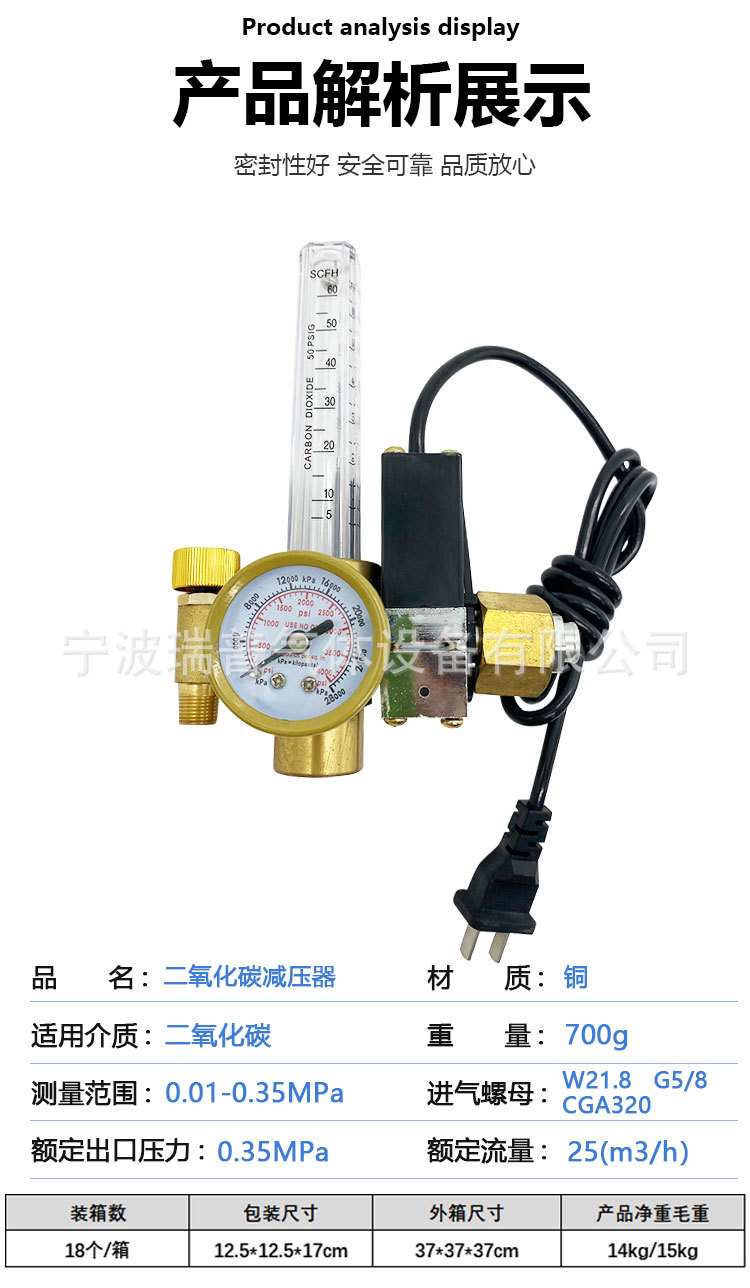 - Efficient Electric Heating Function: Features an integrated electric heating element to prevent CO2 gas freezing during high flow rates, ensuring stable pressure and continuous operation.
