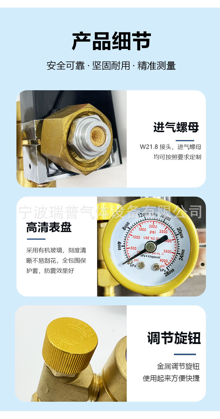 - Stable Single-Stage Regulation: Utilizes a single-stage design for consistent and reliable pressure regulation, delivering a stable rated output pressure of 0.35 MPa for optimal performance.