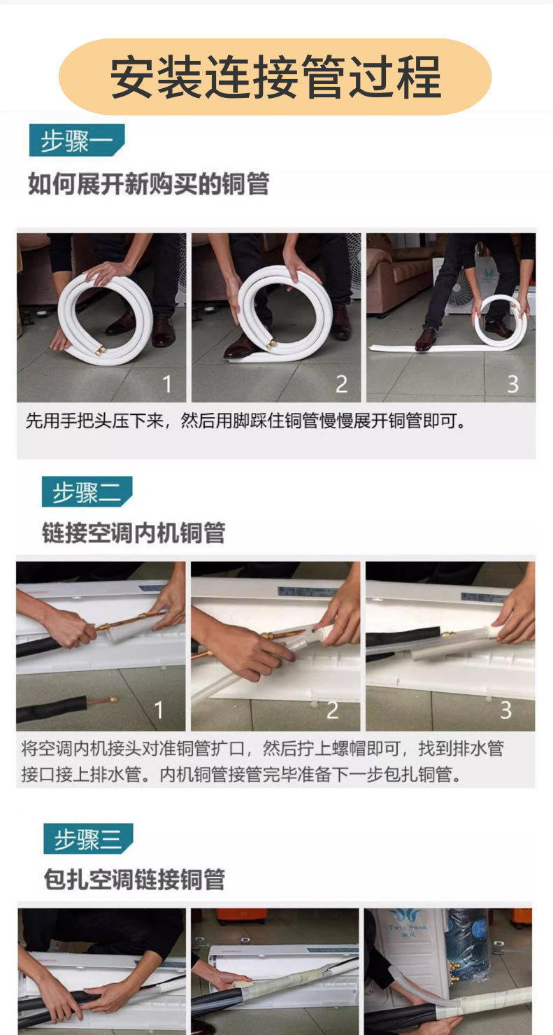 - Wide Compatibility: Universal AC copper connecting pipe designed for 1P, 1.5P, 2P, 3P, and 5P air conditioning units, compatible with all major HVAC brands for versatile use.