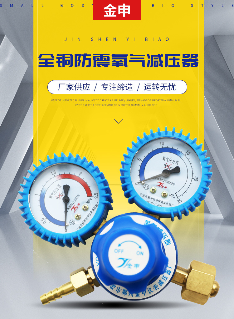 Full Copper Shockproof Oxygen Pressure Reducer YQY07-C with Cover Pressure Gauge 0-15MPA for Industrial Gas Applications