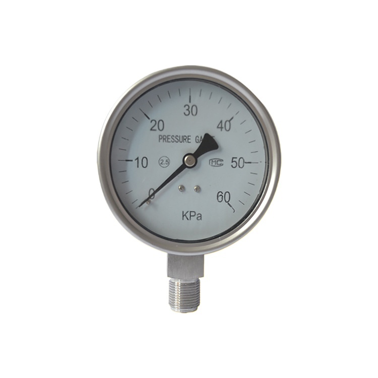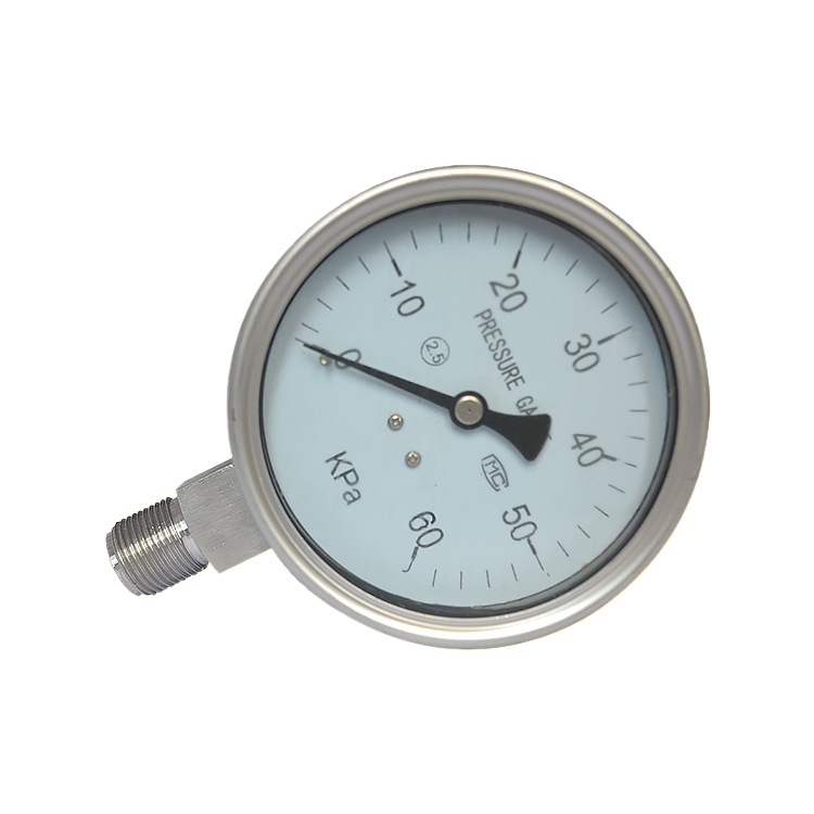 Full Stainless Steel Micro Pressure Gauge (YE-100, 0-60 KPa, Radial Mount, M20*1.5, 100mm Diameter, 2.5 Accuracy) for HVAC Systems, Replaces Standard Analog Pressure Gauges