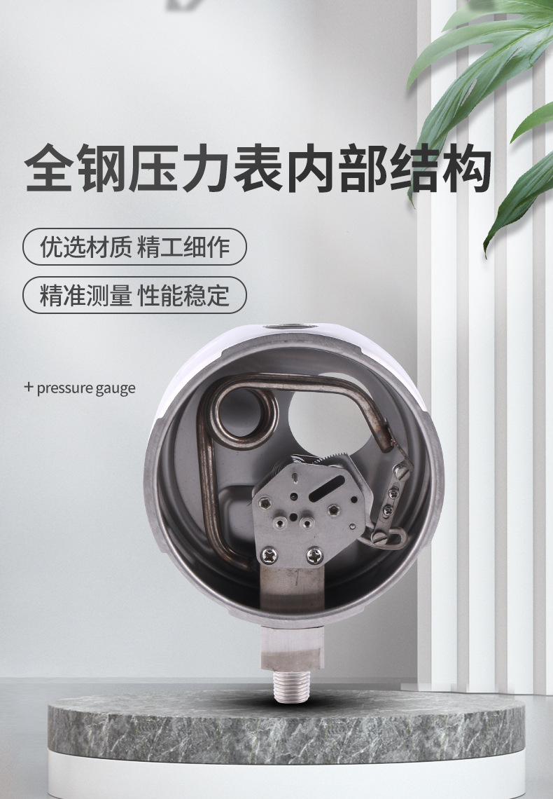 Full Stainless Steel Pressure Gauge Internal Structure 100mm Radial Integrated Welded Pressure Gauge for High Pressure Spiral Tube OEKATE/Jiuzhou