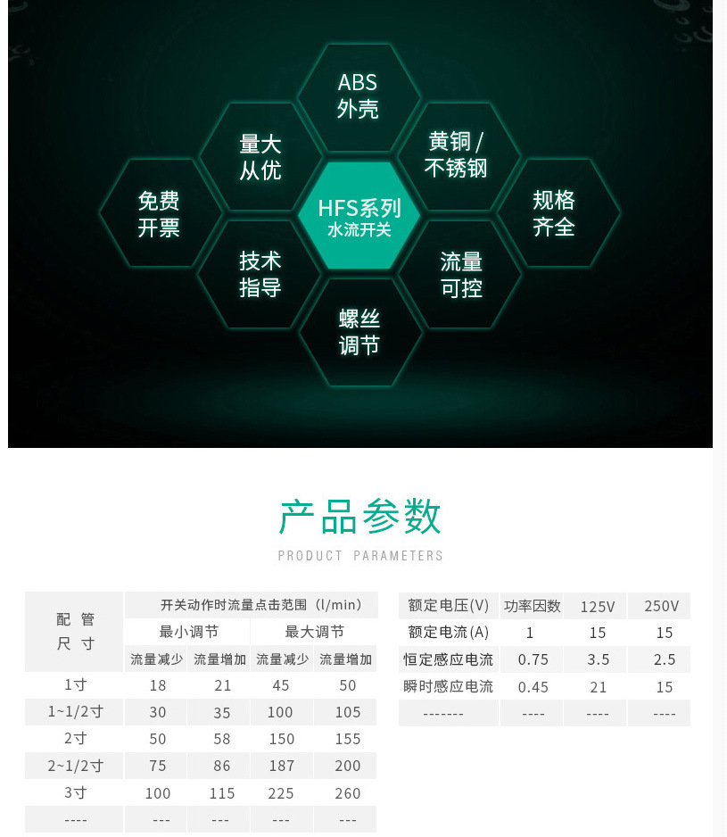 - Easy Installation: Designed for straightforward installation with common pipe sizes, available in HFS-15 (1/2 inch), HFS-20 (3/4 inch), and HFS-25 (1 inch) specifications for versatile application.