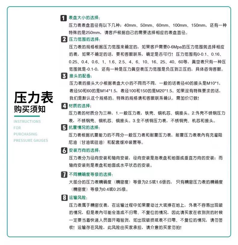 - Key Specs & Performance: Features a 100mm diameter dial for clear readings, an accuracy class of ±1.6%, and an oil-filled, seismic-resistant design (YTN-100BF) for stable and accurate measurements even under vibration.