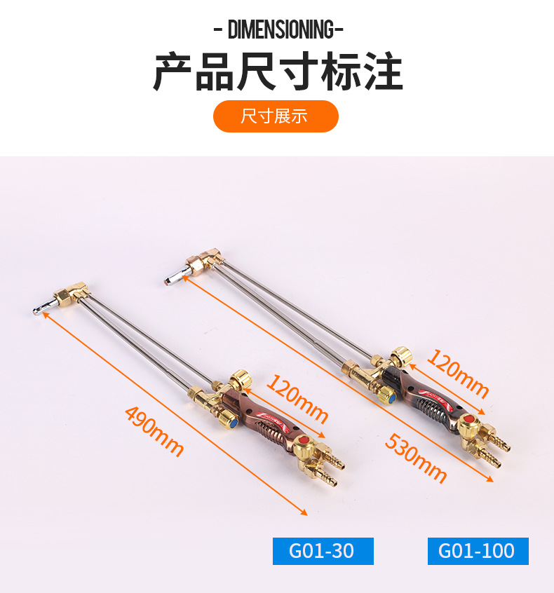 - Ergonomic & Portable: At 52cm total length and with an 8mm gas pipe interface diameter, this torch (G01-30/G01-100 models) is designed for comfortable handling and easy transport.