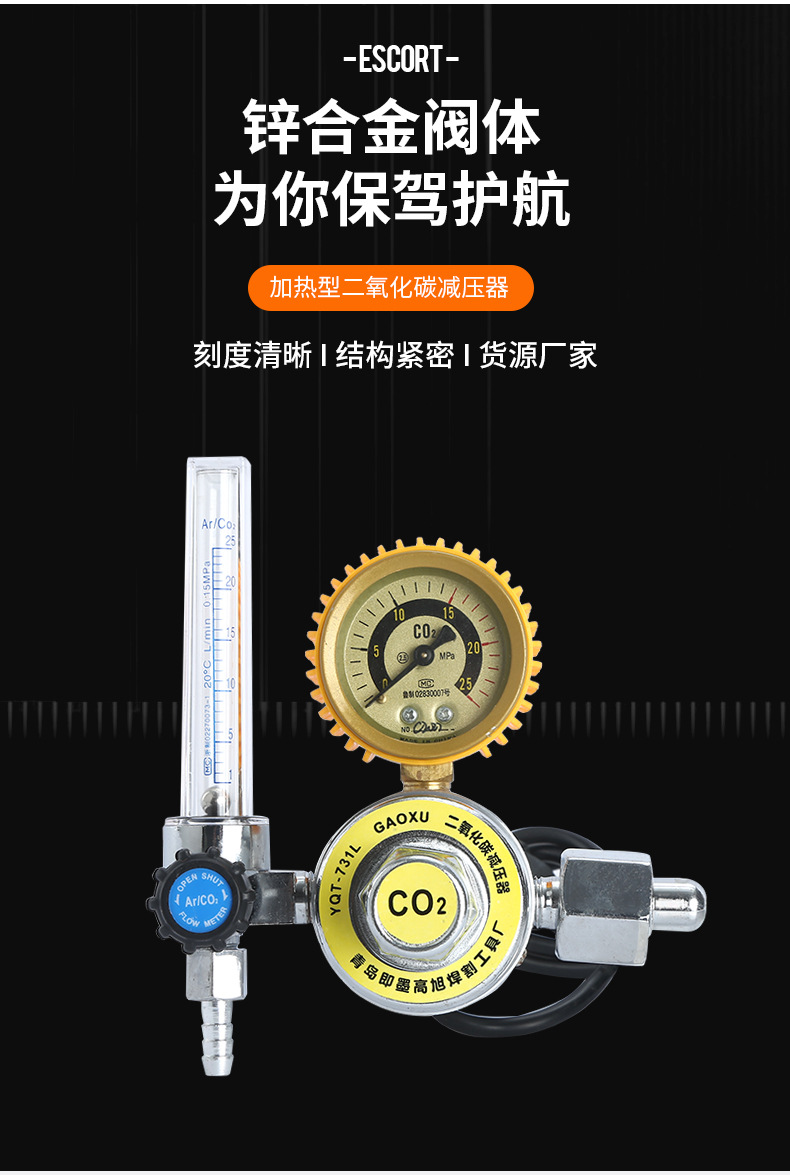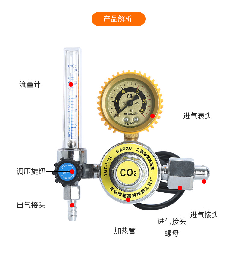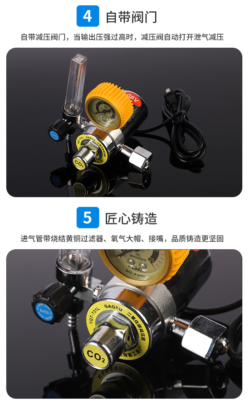 GAOXU Heated CO2 Pressure Reducer Regulator Gauge for MIG MAG Welding W/ Flow Meter & High Accuracy
