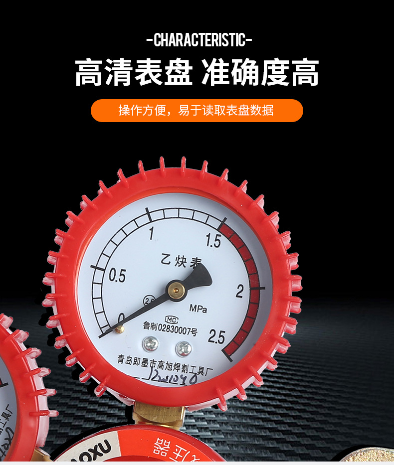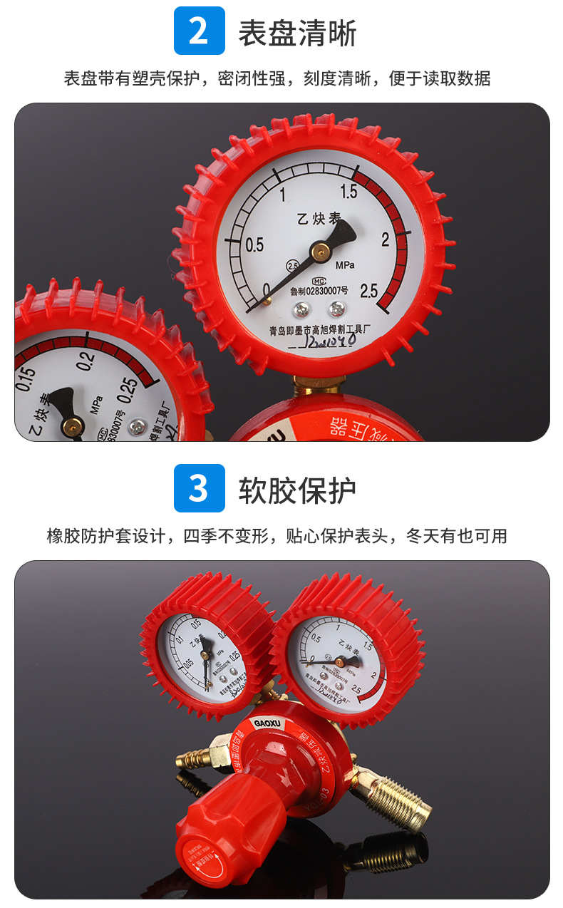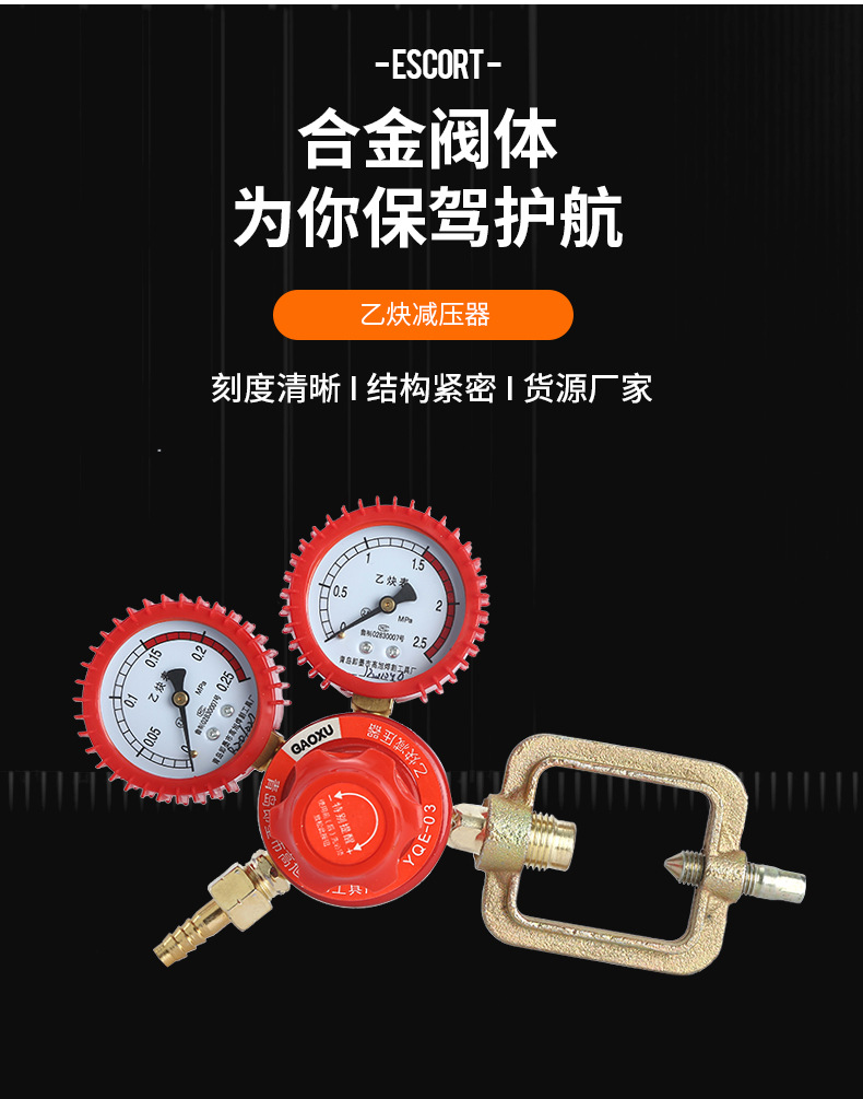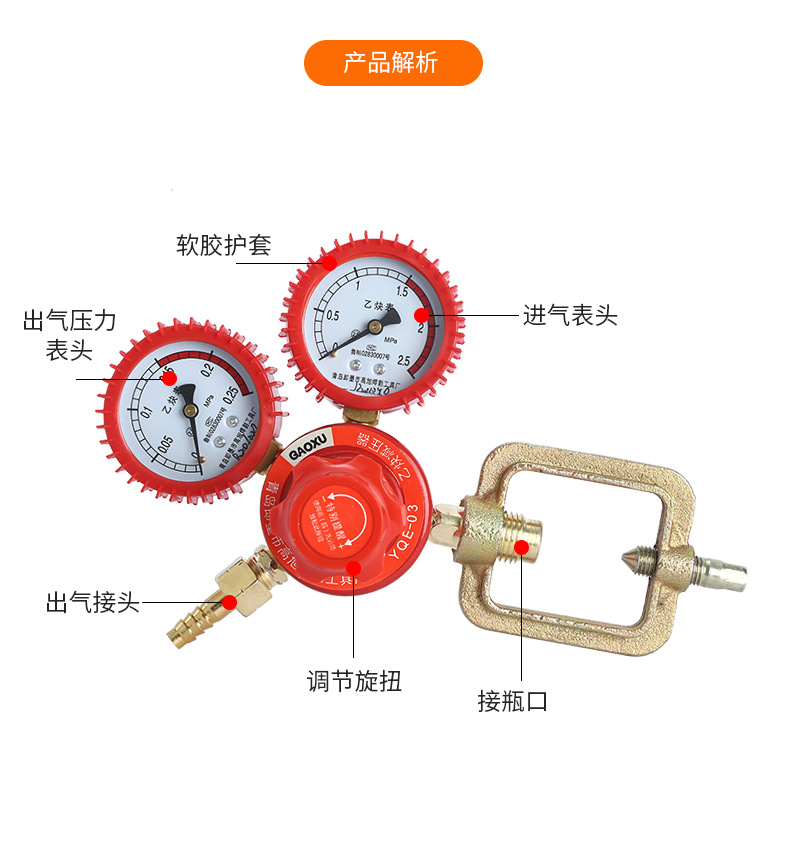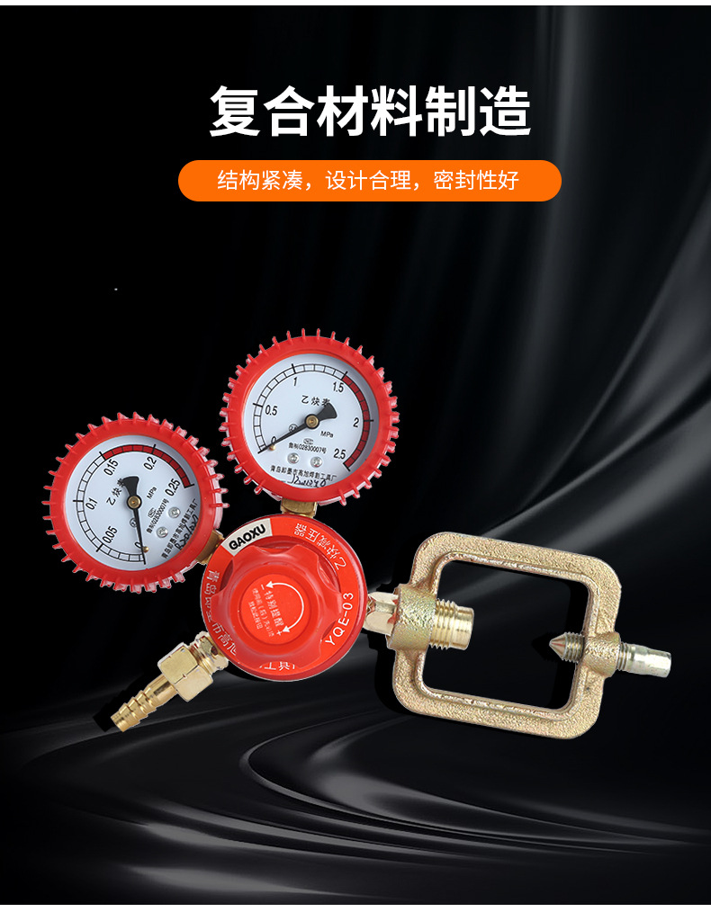 GAOXU YQE-03 Acetylene Pressure Regulator with Shock-proof Dual Gauges for Industrial Welding & Cutting