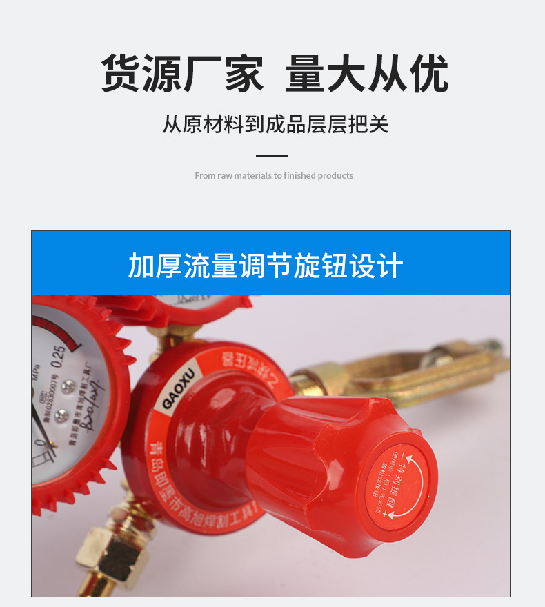 - Precise Pressure Control: Features dual shock-proof gauges for accurate and stable measurement of input (0-2.5MPA) and output (0-0.25MPA) pressure, ensuring optimal gas flow.