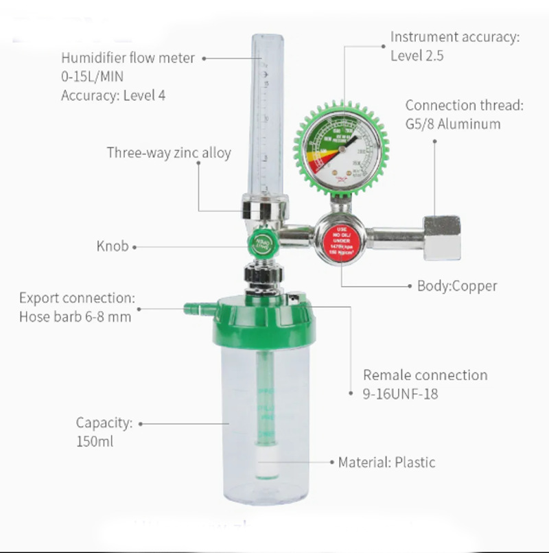 - What You Get: Includes one complete oxygen flow meter with integrated pressure gauge, ready for immediate use in medical oxygen delivery systems.