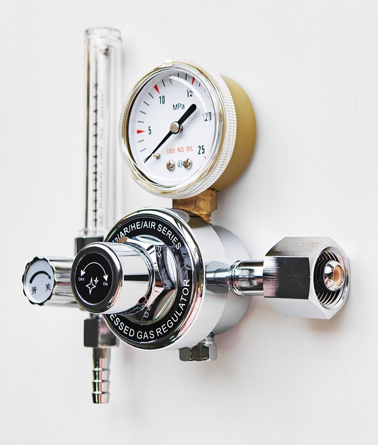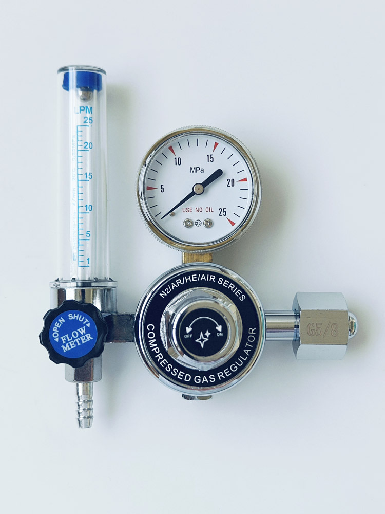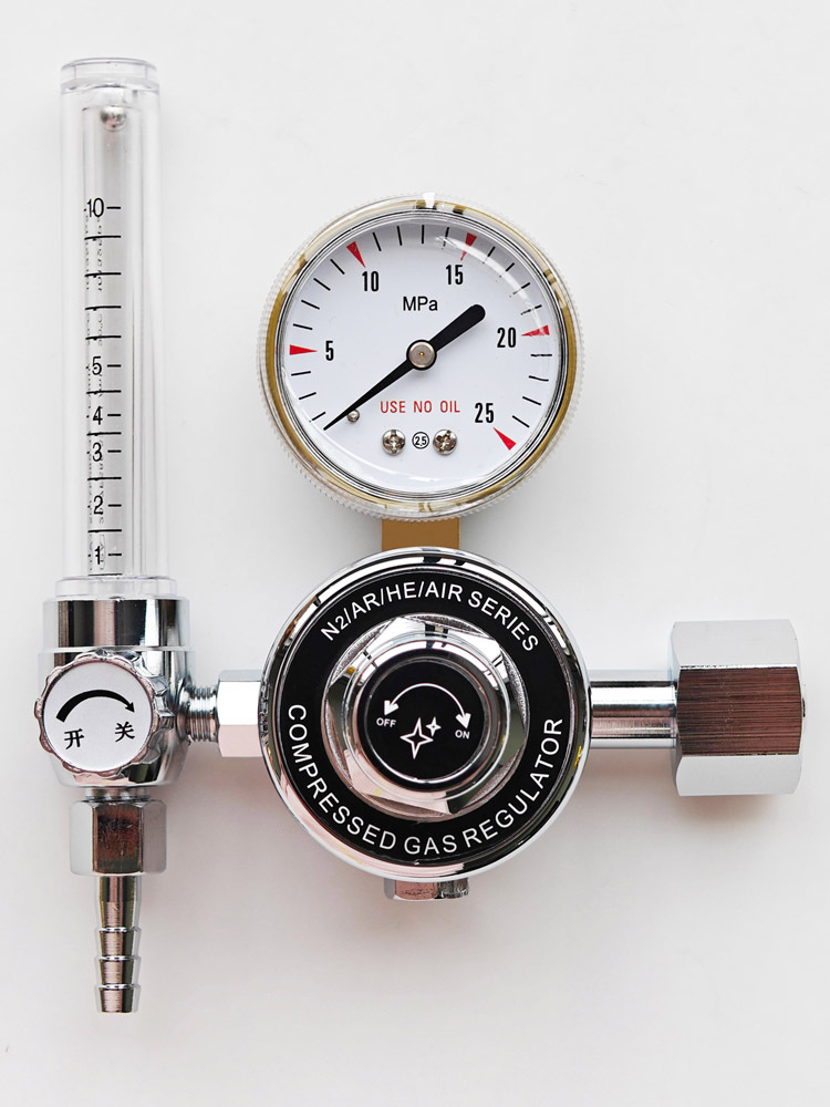 Gas Flow Meter Regulator for Compressed Gases (N2/AR/HE/AIR) with 0-25 MPa Gauge for Laboratory Use