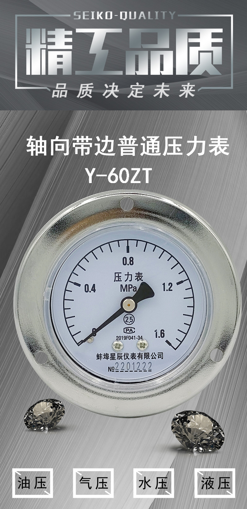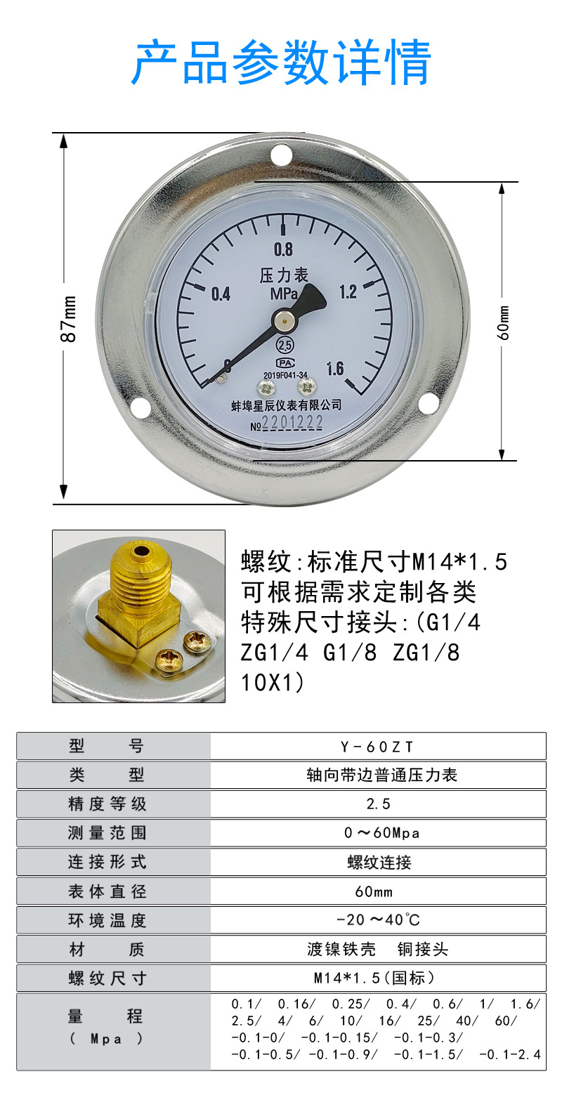 - Key Specs & Performance: Measures pressure from 0 to 1.6 MPa with a 2.5 accuracy grade and 60mm nominal diameter, providing precise readings for critical system monitoring.