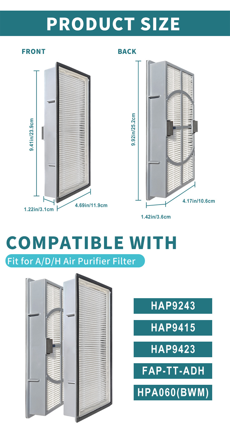 - Wide Compatibility: Designed for Honeywell HPA060(BWM), 3M Filtrete FAP-TT-ADH, and Holmes HAP9243, HAP9415, HAP9423, ensuring a perfect fit as a direct replacement for ADH-H13 filters.