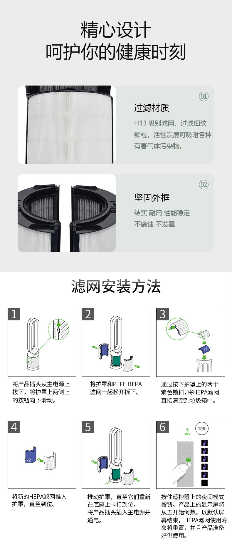 - Wide Compatibility: Specifically designed to fit Dyson Air Purifier models TP06, HP06, PH02, HP09, and TP09, ensuring a perfect and seamless replacement.
