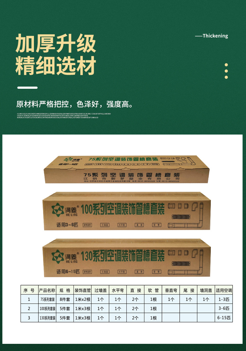 - What You Get: One complete set of HE LING Air Conditioner Decorative Duct Covers in your chosen series (75/100/130), providing an aesthetic and protective solution for HVAC lines.