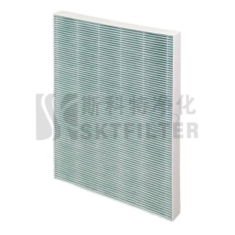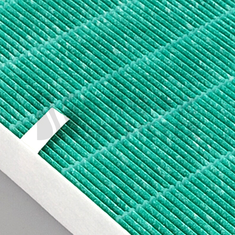 - Premium Filtration Media: Features a high-efficiency green HEPA filter and an activated carbon layer. The HEPA filter captures 99.97% of airborne particles as small as 0.3 microns, including dust, pollen, pet dander, and allergens, while the activated carbon effectively removes odors and VOCs like formaldehyde.