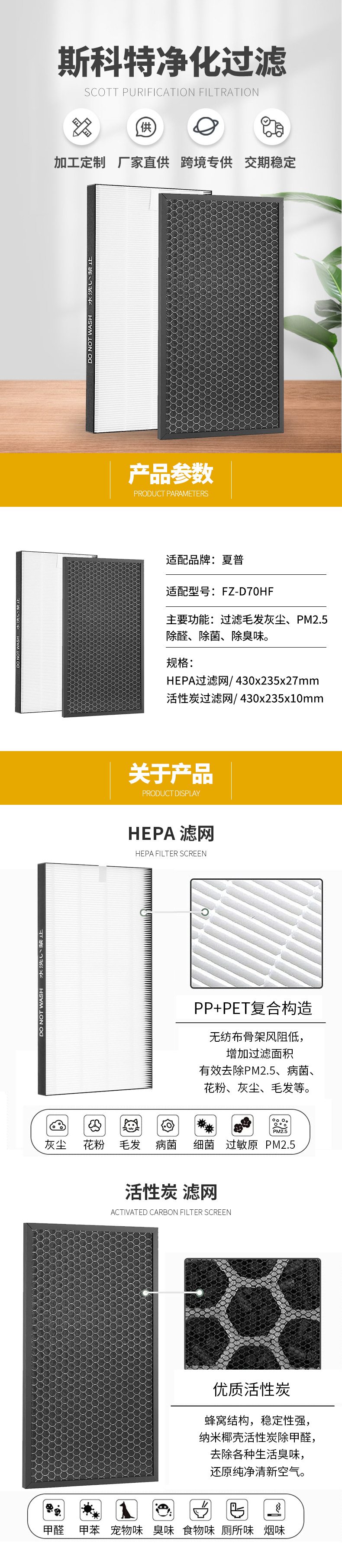 - Key Specs & Performance: The HEPA filter (432x234x27mm) effectively captures 99.97% of 0.3 micron particles like dust, pollen, and allergens, while the activated carbon filter (432x234x10mm) removes odors, formaldehyde, and pet dander.