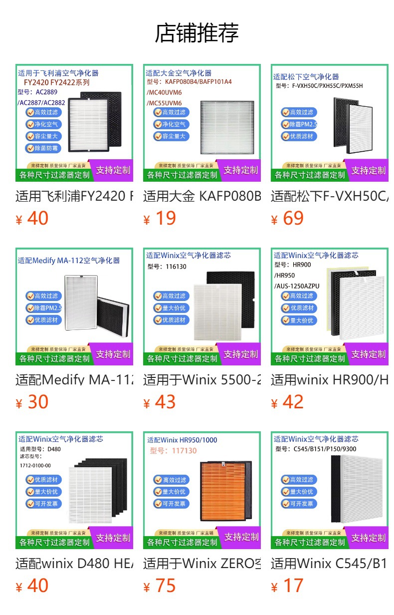 Assorted Air Purifier Filter Replacements (HEPA, Activated Carbon, and Composite Filters) for various Air Purifiers