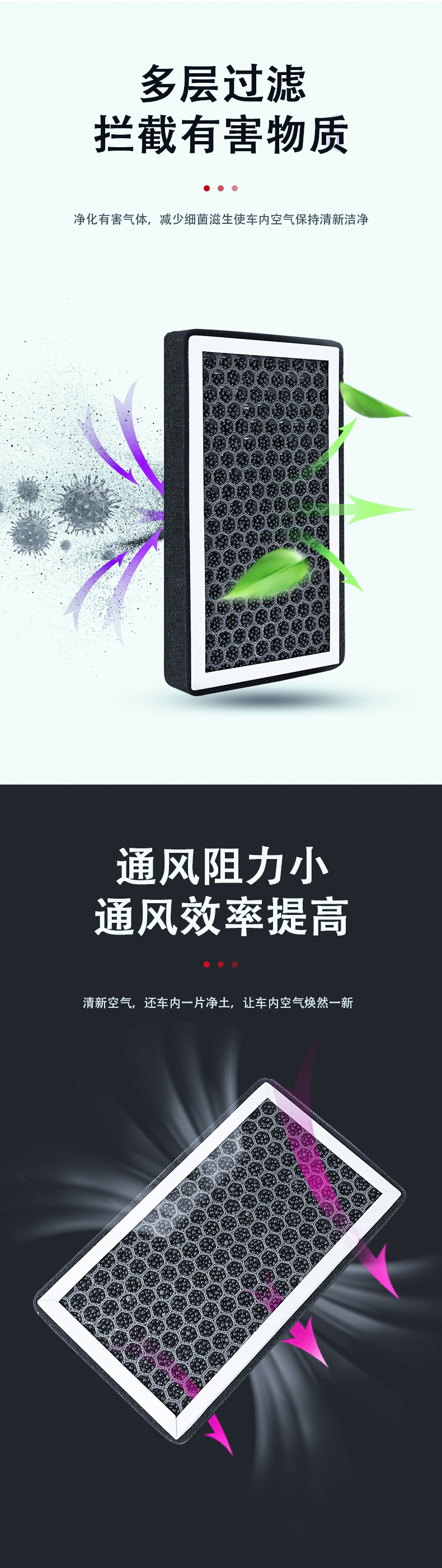 - Superior Filtration Performance: Efficiently removes formaldehyde, smog, odors, and PM2.5 particles, offering a cleaner and fresher cabin air experience.