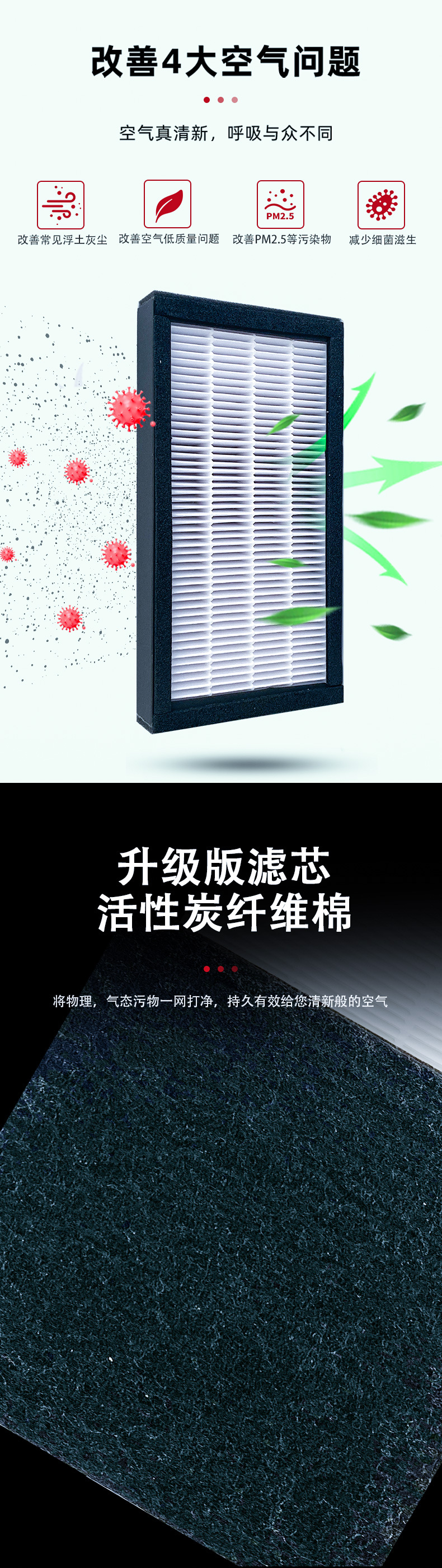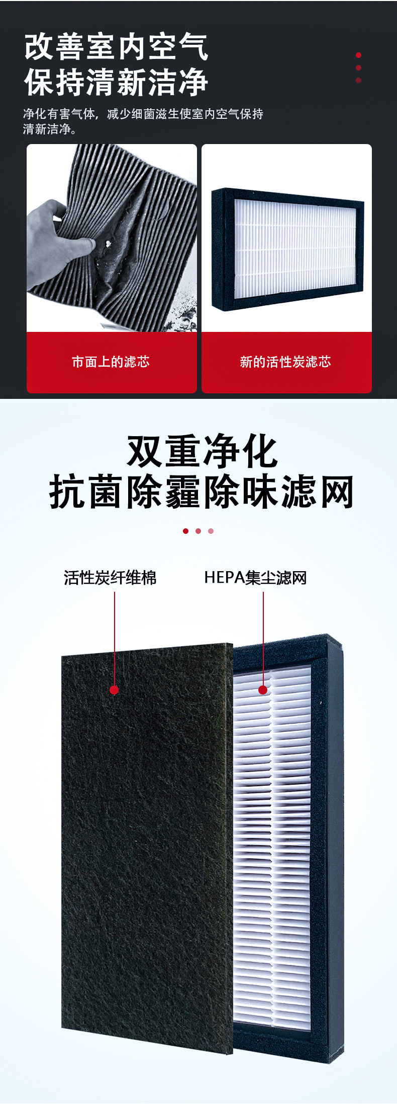 - Quality Materials: Features both HEPA and activated carbon filtration, effectively capturing PM2.5, odors, and formaldehyde, ensuring clean air.
