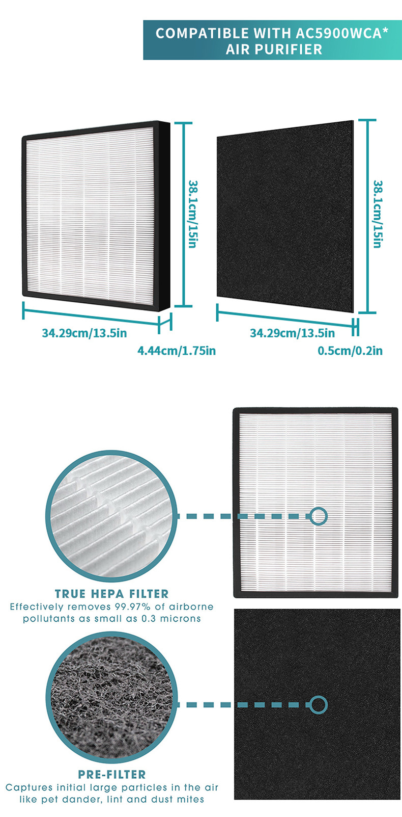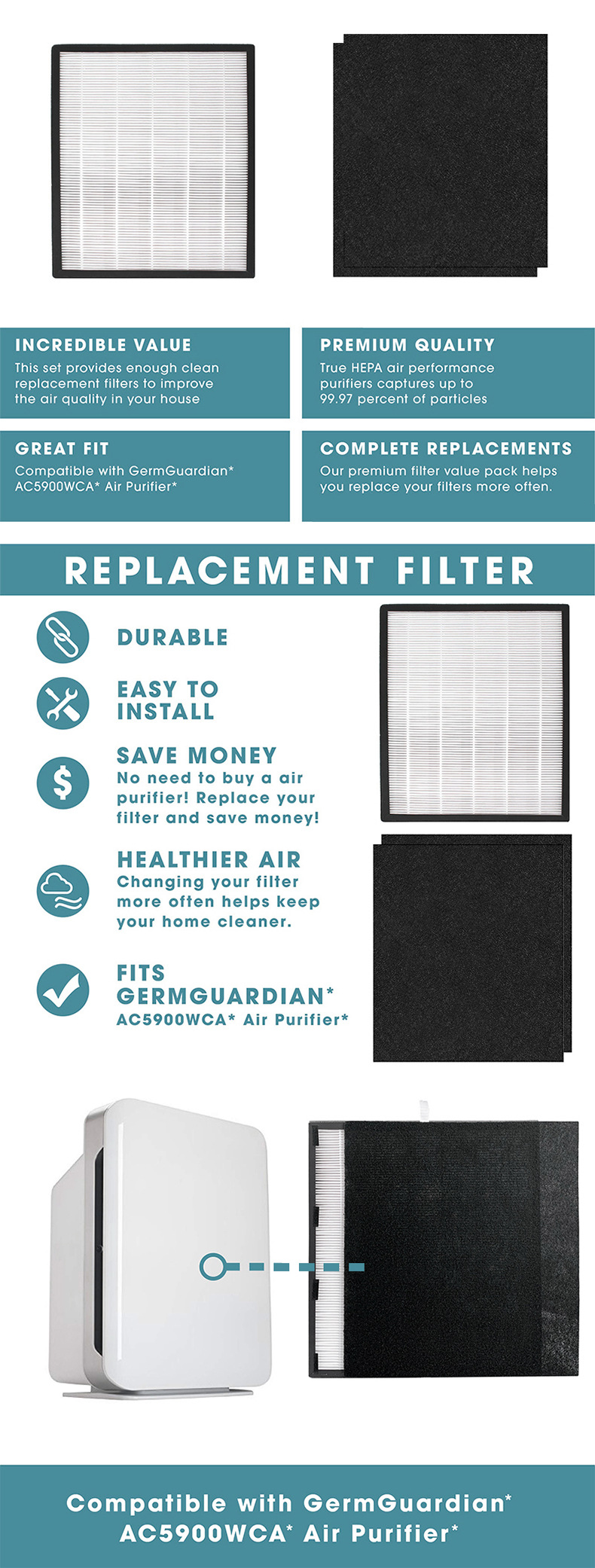 - Wide Compatibility: Designed to perfectly fit Germ Guardian FLT 5900 air purifiers, ensuring an authentic and snug fit for optimal performance. Replaces part number FLT5900.
