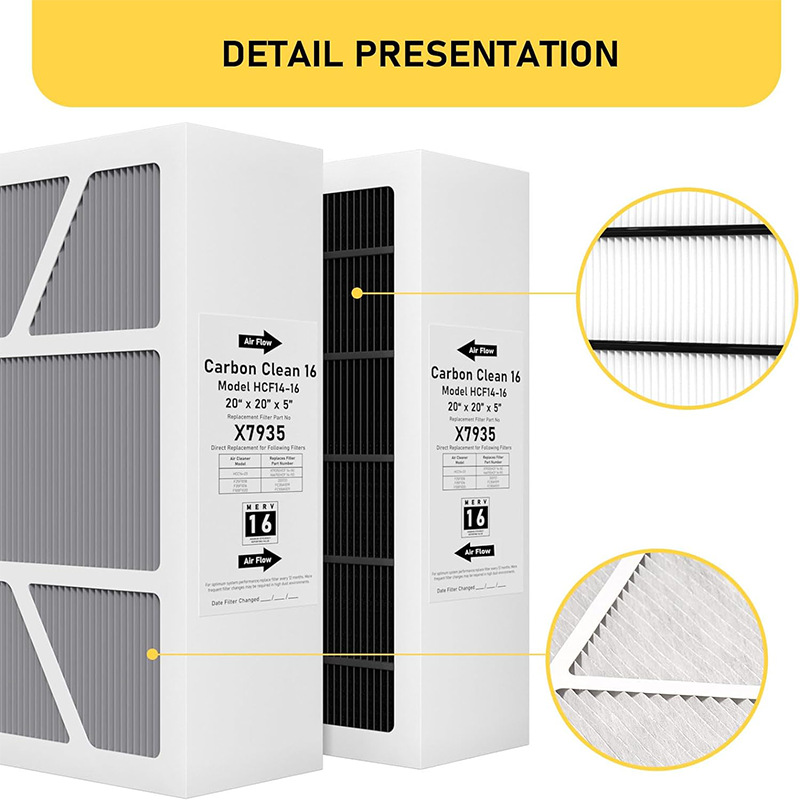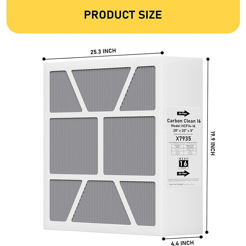 - Optimal Filtration Performance: Features a 20x20x5 inch dimension, providing broad surface area and MERV 16 efficiency for effective removal of dust, pollen, pet dander, and other allergens.