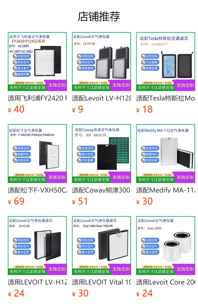 Assorted Air Purifier Filter Replacements (HEPA, Activated Carbon, and Composite Filters) for various Air Purifiers