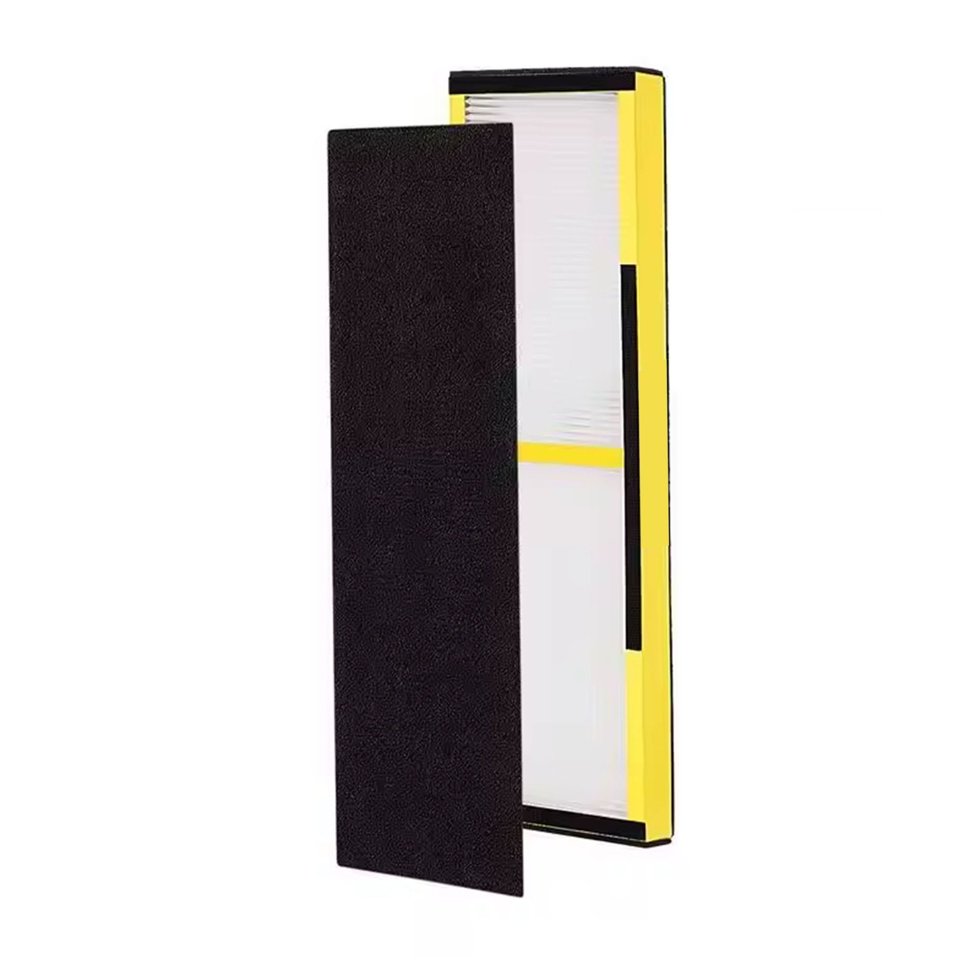 - Premium Filtration: Features a high-efficiency HEPA filter (yellow frame) combined with activated carbon pre-filters, designed to capture 99.97% of airborne particles down to 0.3 microns, including dust, pollen, pet dander, and odors.