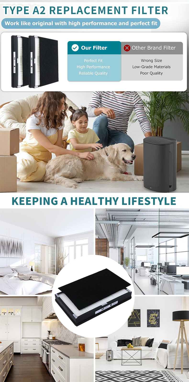 - Value Pack: Includes a convenient 2-pack (2+2 indicated as 4 pieces) of A2 replacement filters, ensuring you have a spare on hand for continuous clean air and better value.