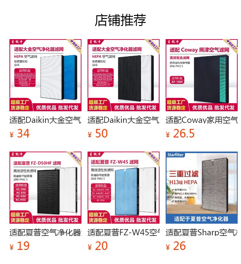 Assorted Air Purifier Filter Replacements (HEPA, Activated Carbon, and Composite Filters) for various Air Purifiers